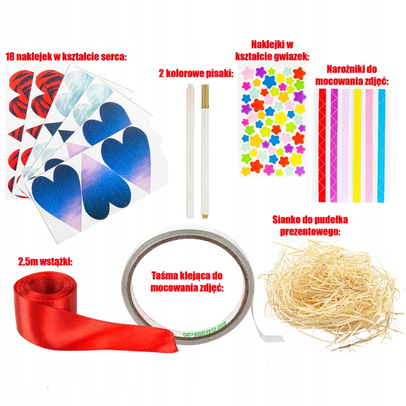 - 18 наклеек в форме сердечек (3 разных дизайна)