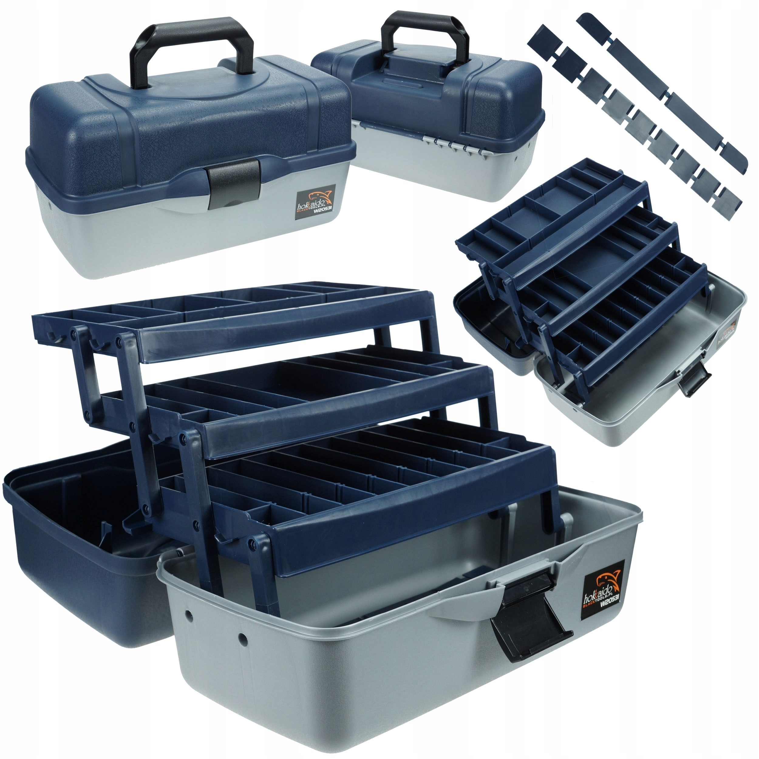 Коробка имеет 3 уровня с 20 фиксированными и 7 подвижными перегородками.