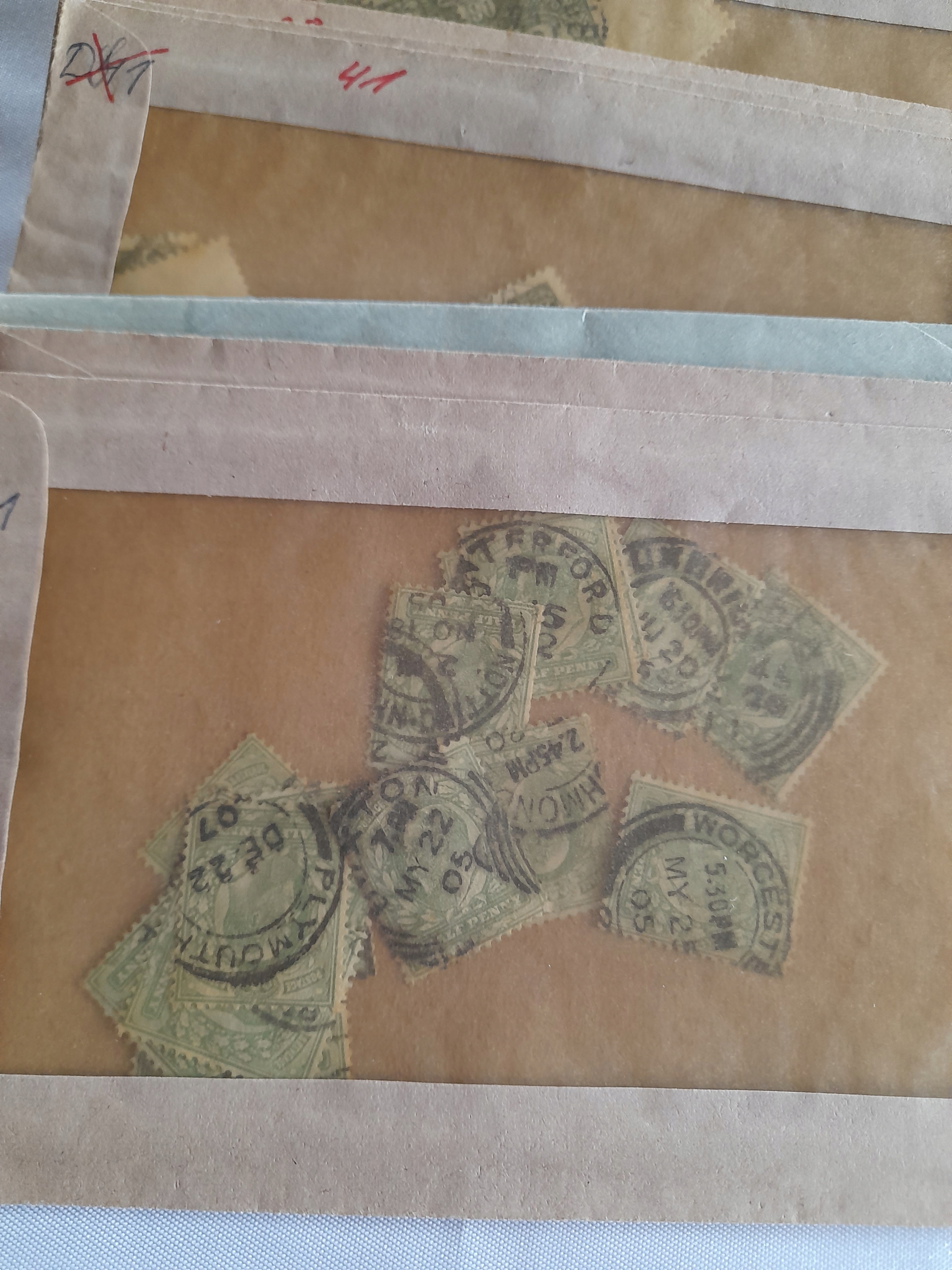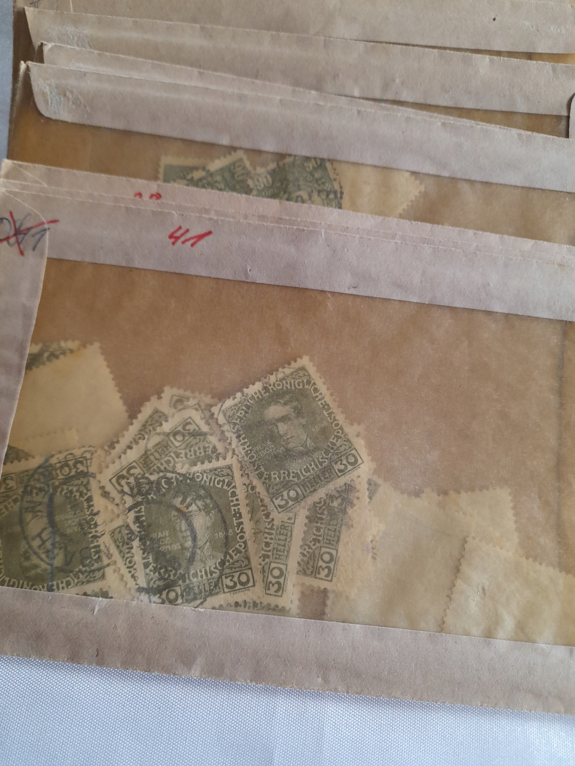 Коробка с ценной возрастной коллекцией мировых марок до 1945 года. 22 конверты
