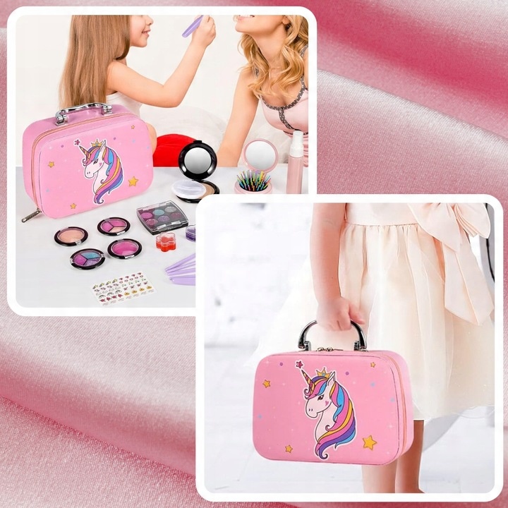 ✅Проверенная косметика: Косметика в наборе безопасна для детской кожи. Кроме того, они легко смываются водой, что делает их идеальными для юных визажистов.