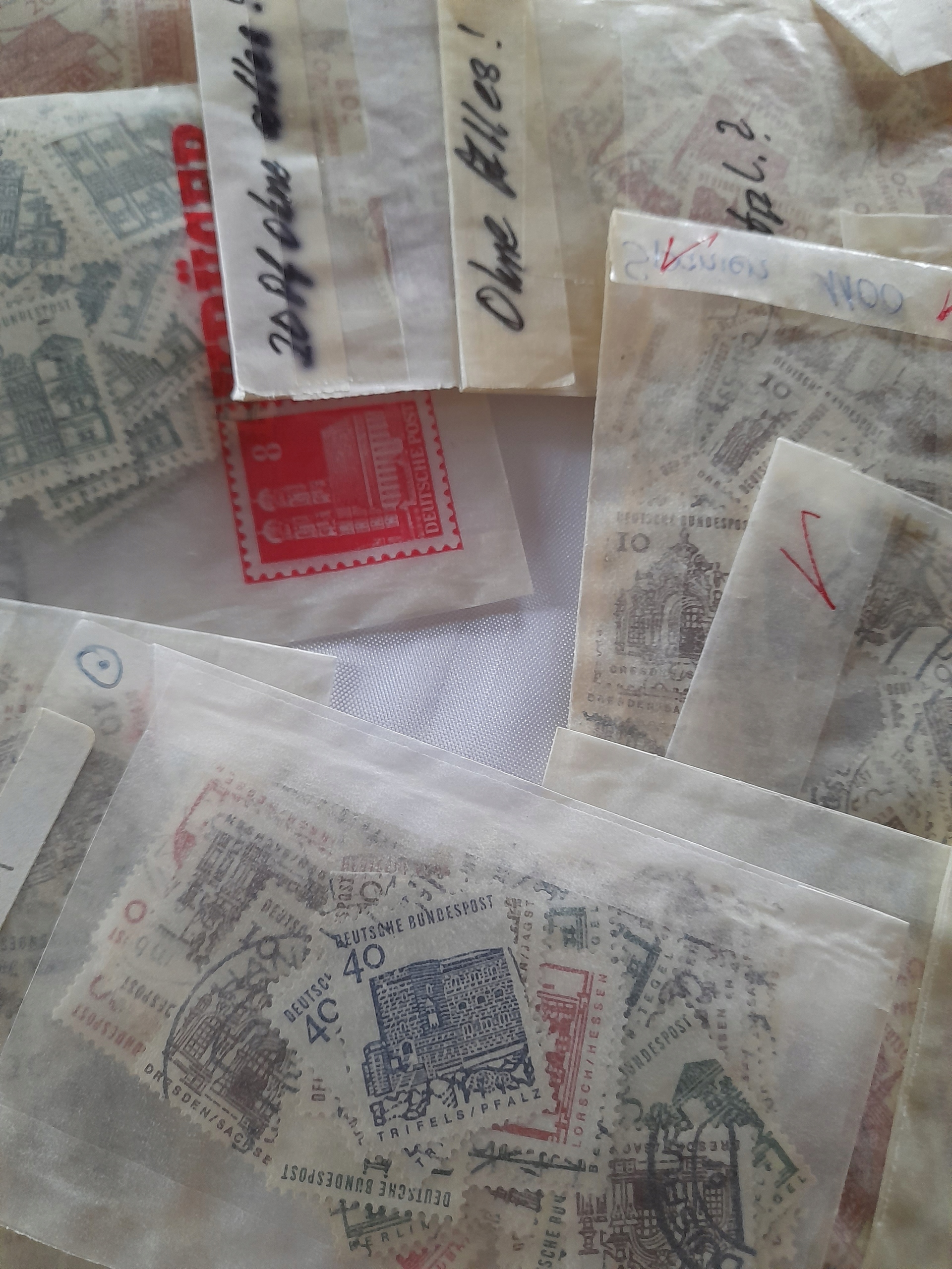 коробка с несколькими тысячами марок. Ценности в различных состояниях. Значения в защитных конвертах. Значения повторяются в больших количествах. Все показано на картинках. Условие, как на картинках.
