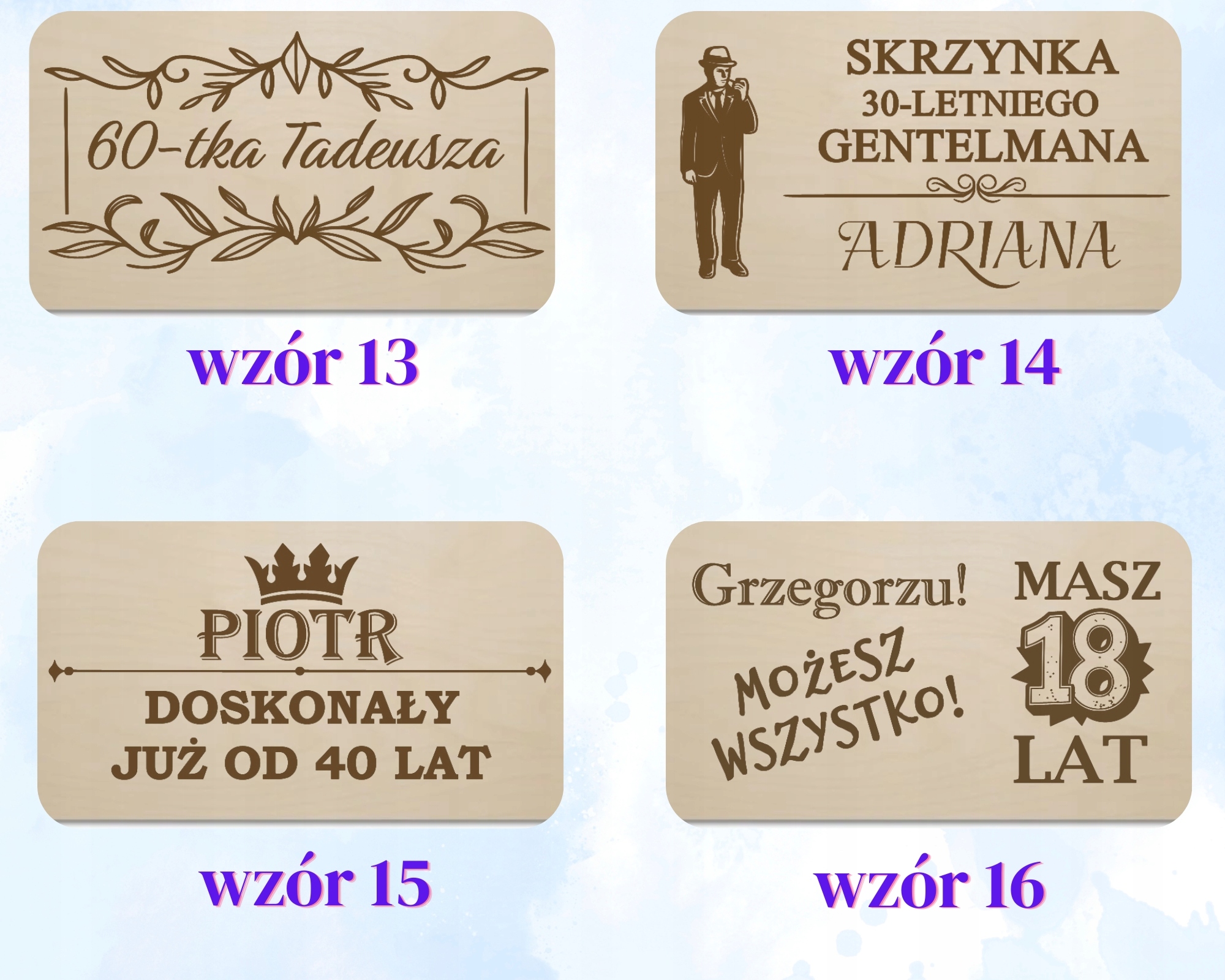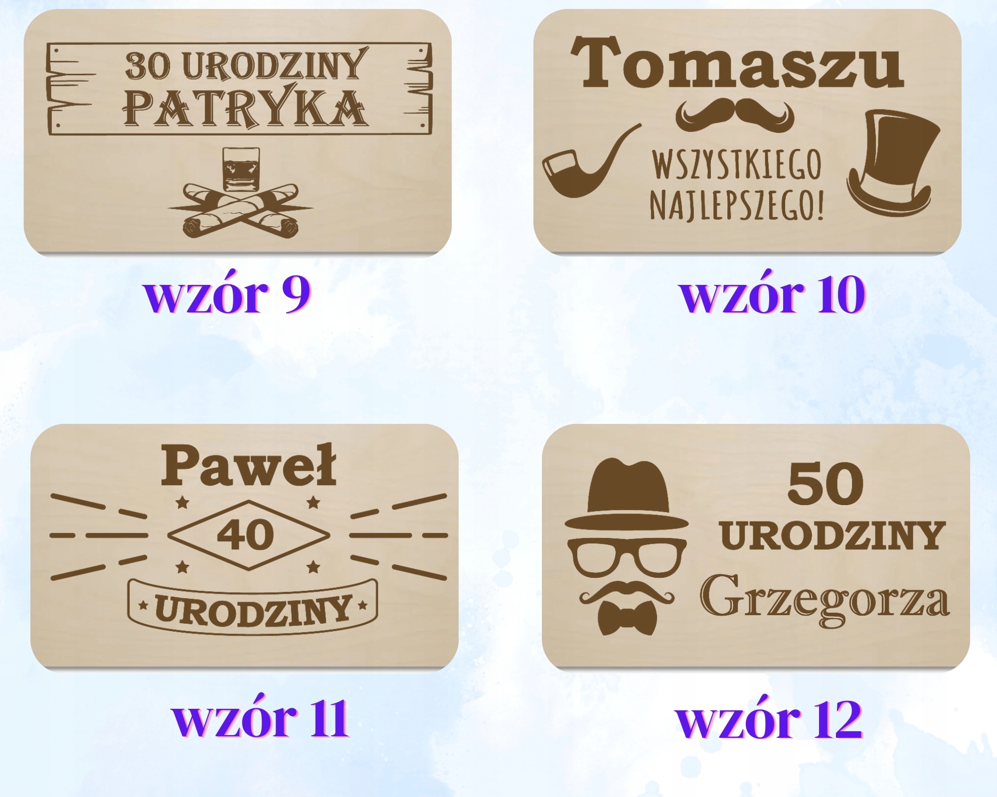 шаблоны на выбор - шаблоны являются подвижными, каждый шаблон может быть изменен, например, Вместо 30 -летия, выгравируйте 20 -летие и т. Д. H1>