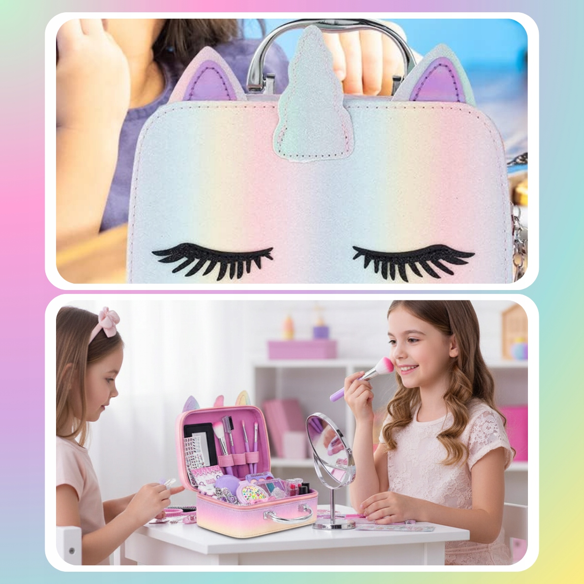 Кейс для косметики — идеальная игрушка для маленьких любительниц макияжа. Он содержит все необходимое для создания ярких образов — от теней для век и помад до лаков для ногтей и аксессуаров.