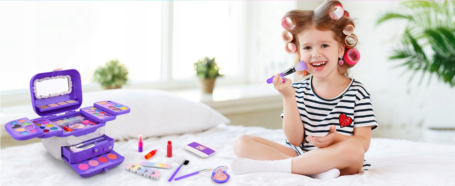 Косметика, помещенная в футляр, полностью безопасна, сертифицирована, не вызывает аллергии и очень легко смывается. Лак для ногтей очень легко удаляется с ногтевой пластины без использования жидкости для снятия. Просто вымойте руки под водой и потяните слой лака, и он снимется сам. Ребенок смывает макияж с лица водой.