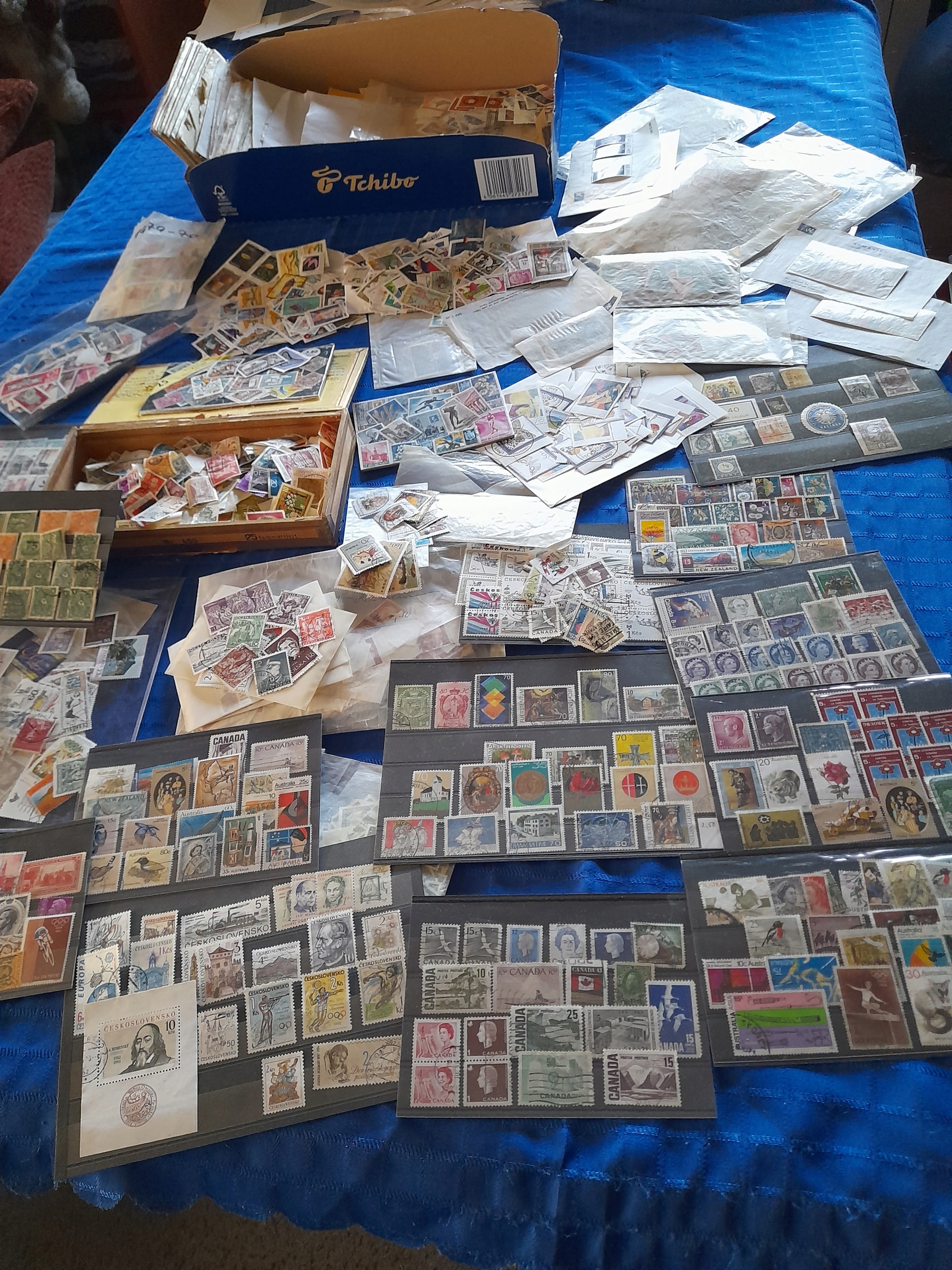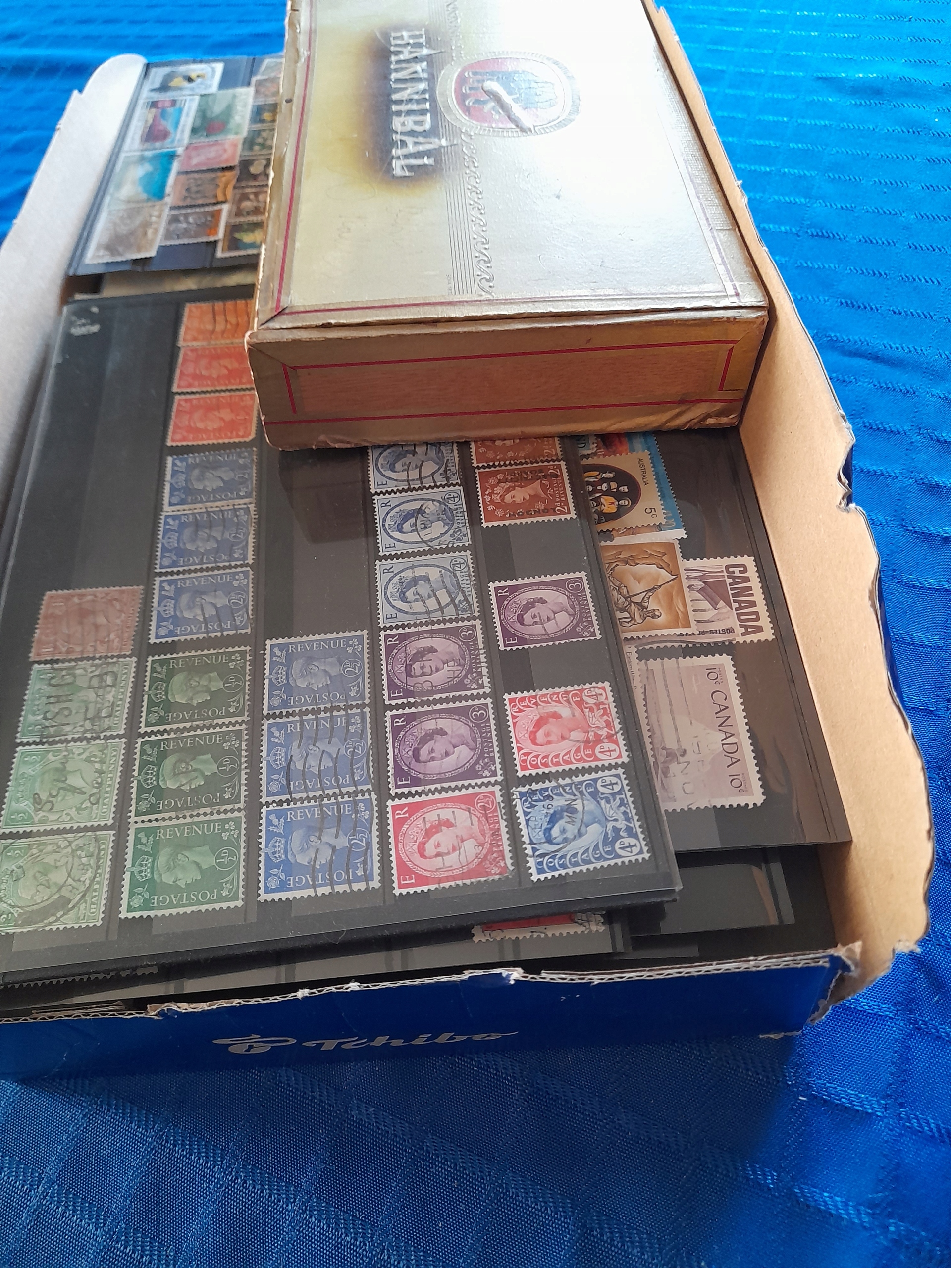 КОРОБКА З ВЕЛИКОЮ КОЛЕКЦІЄЮ КІЛЬКОХ ТИСЯЧ МАРОК ЗІ СВІТУ БЕЗ ВИРИЗОК
