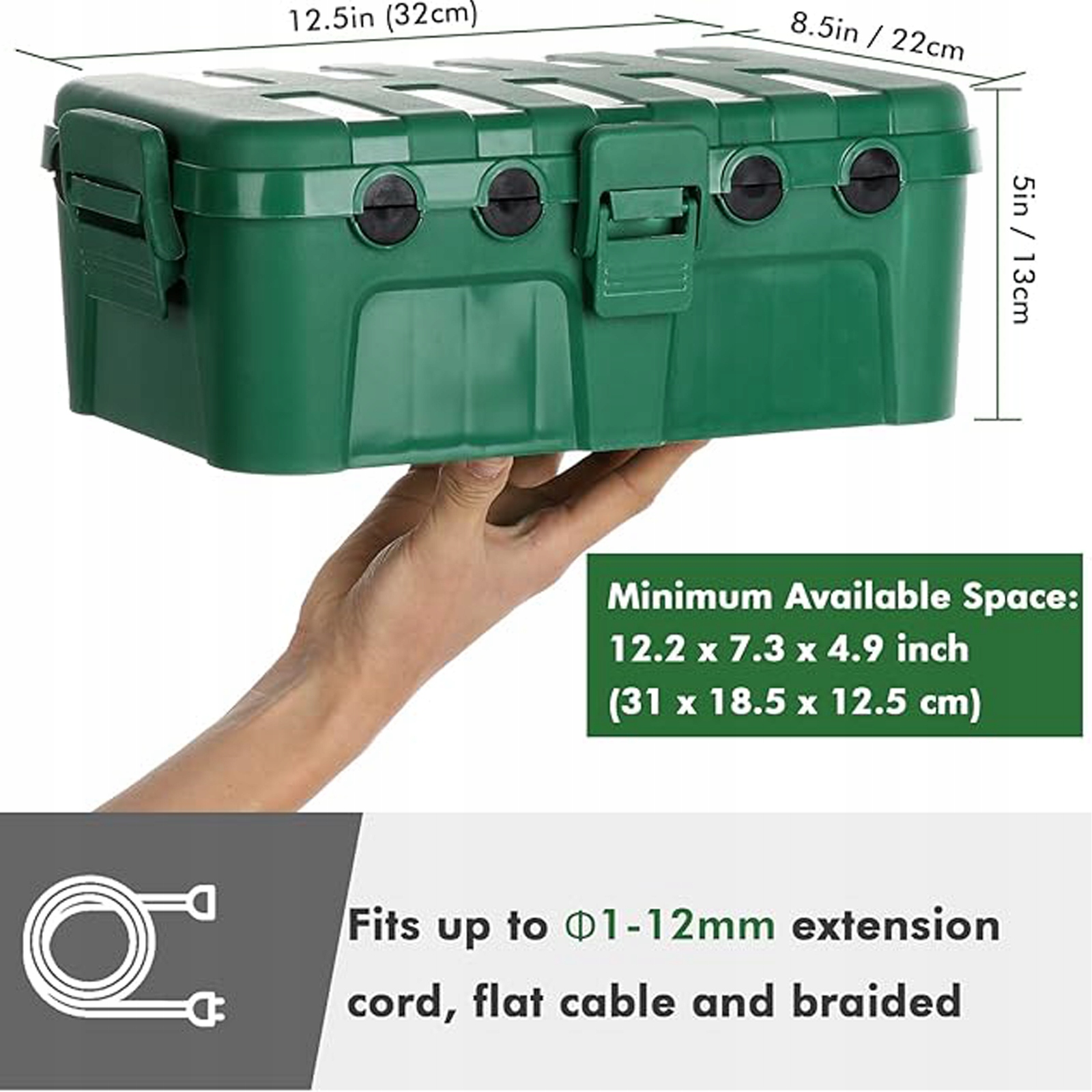 Очень большой водонепроницаемый защитный короб для защиты кабеля, вилка IP54, защита от дождя, сад, кемпинг, зеленый