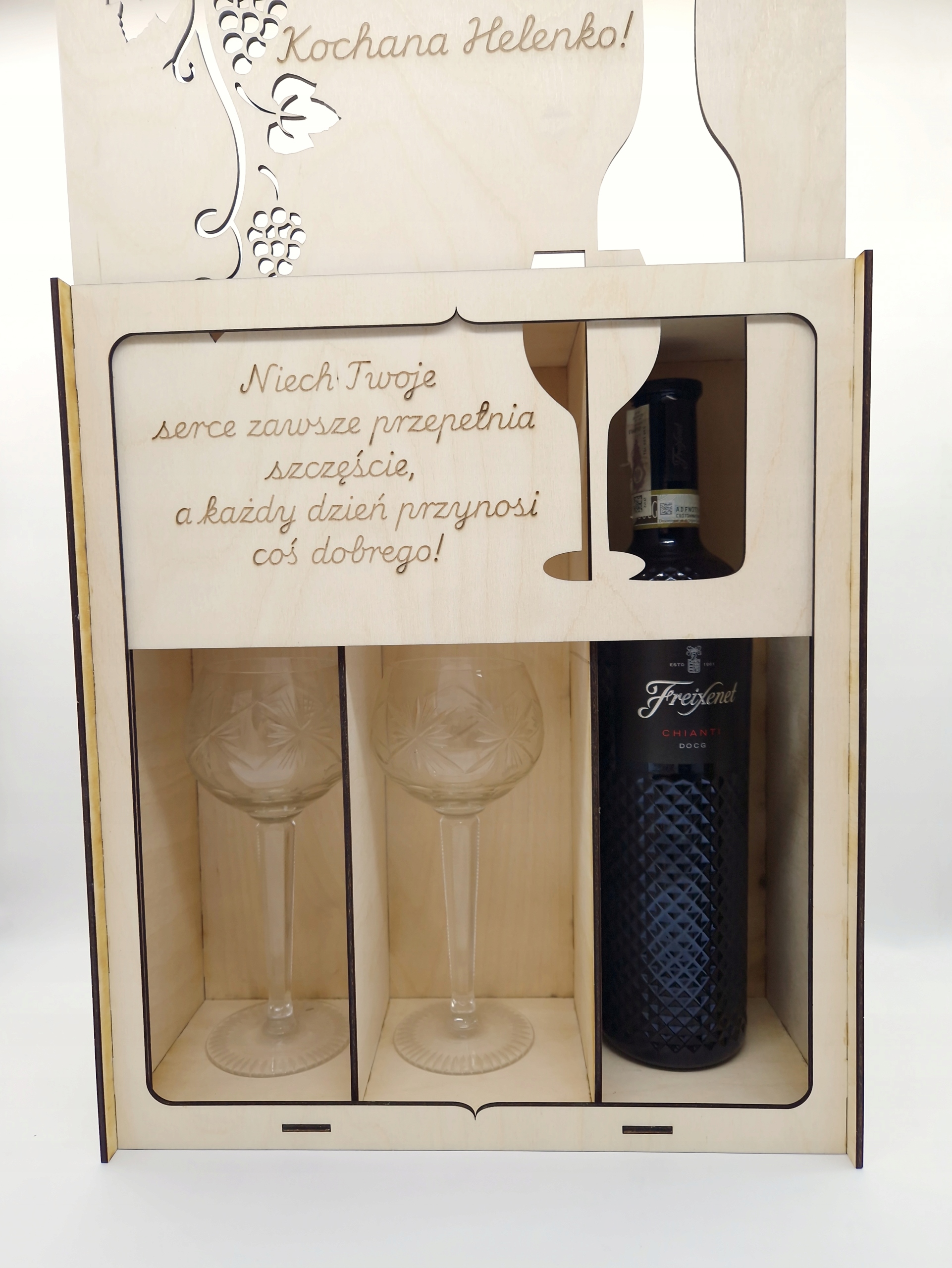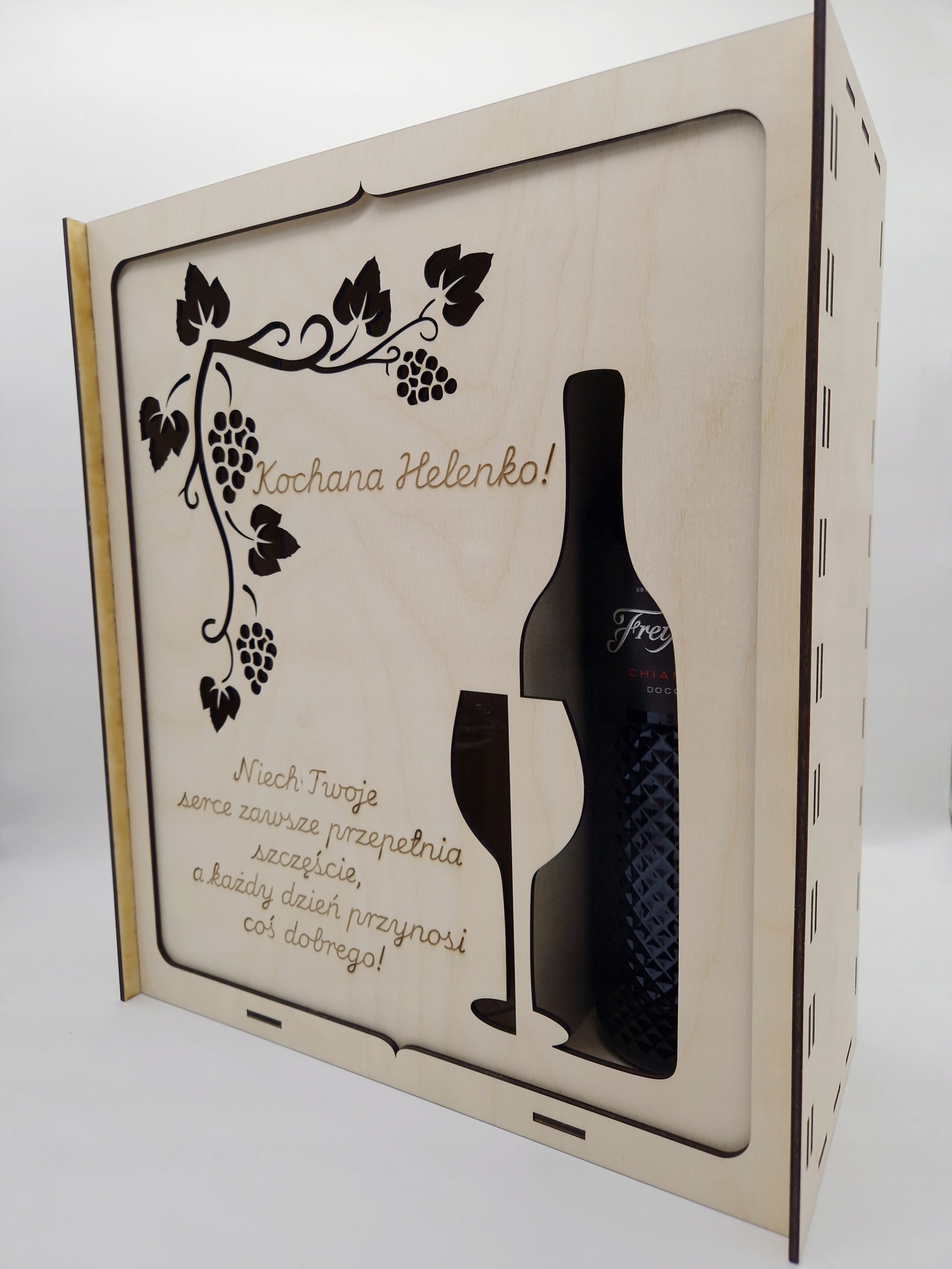 Дайте вино в уникальном стиле! Наша элегантная персонализированная упаковка вина - идеальный выбор для подарка для любимого человека, клиента или коллеги. Изготовленная из высококачественной фанеры с внутренними размерами 330 мм x 300 мм x 100 мм, идеально приспосабливает к двум бутылкам , обеспечивая их безопасность и элегантную презентацию.
