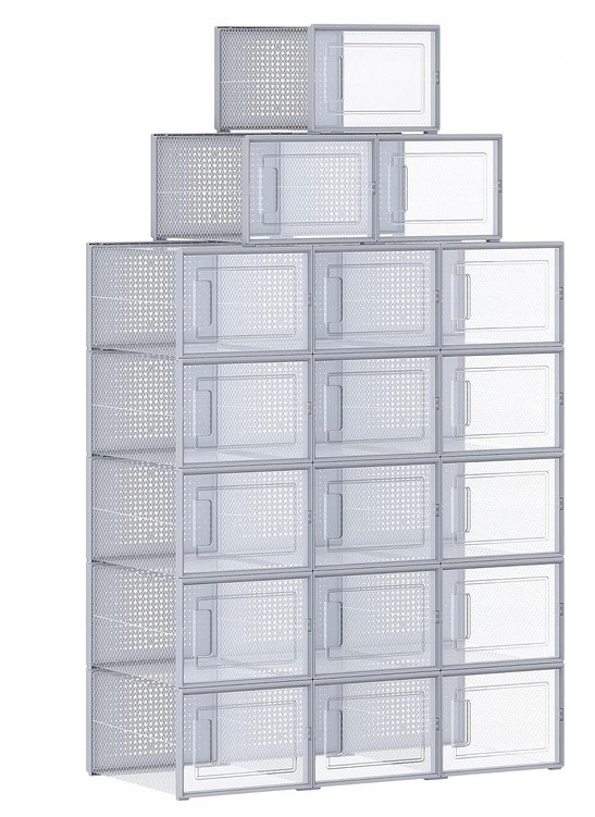 - , который находится в наборе коробки из 18 прозрачных пластиковых ботинок с передними дверями, сложенными и сложенными отверстиями для вентиляции. Попрощайтесь с рассеянной обувью и организуйте обувь сейчас