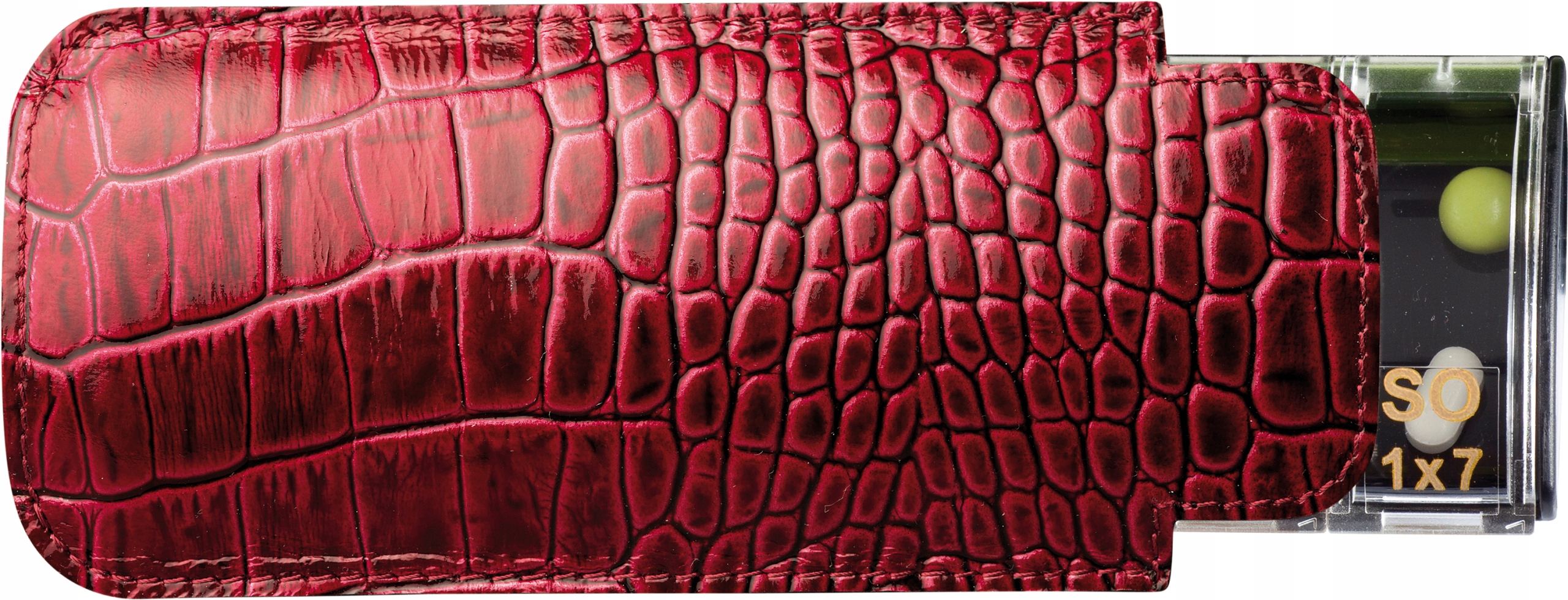 Набор включает в себя кожаный корпус для хранения контейнера.