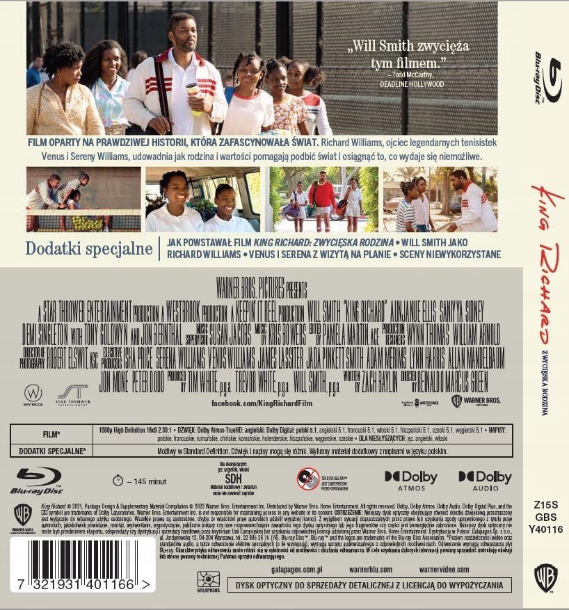 Дополнительно: Как создавался фильм «Король Ричард» : создана Победоносная Семья; Уилл Смит в роли Ричарда Уильямса; Венера и Серена посещают съемочную площадку; Сцены не используются