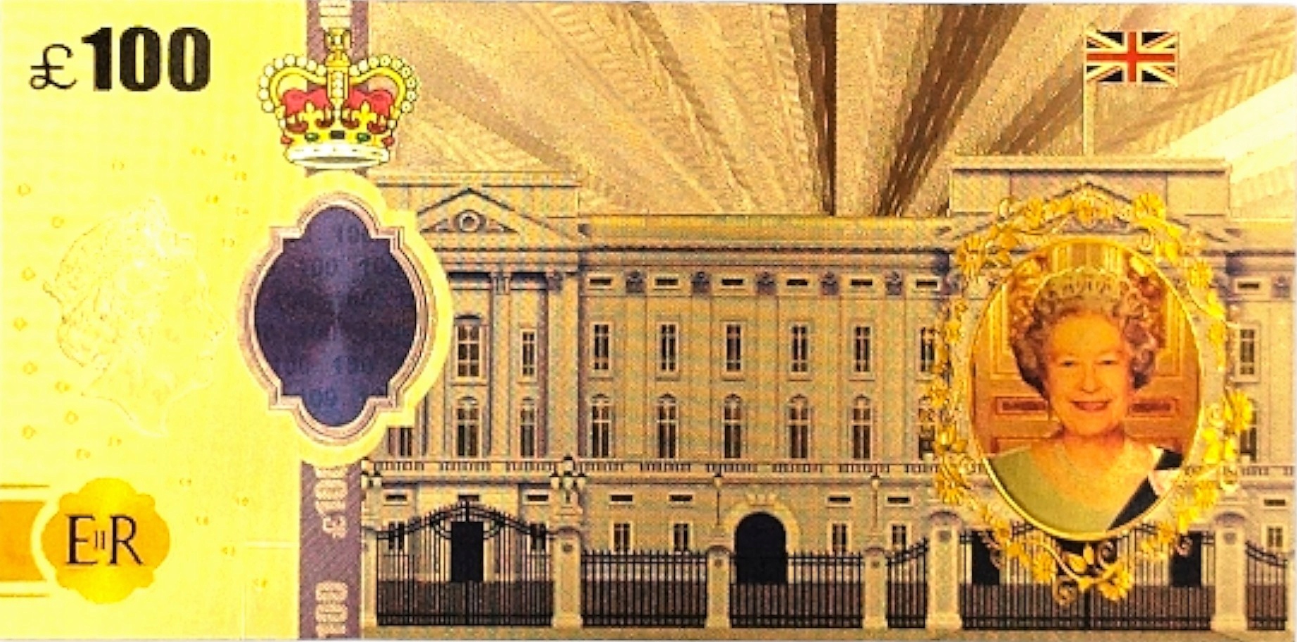 КОРОЛЕВА ЄЛИЗАВЕТА II Позолочена купюра в 100 фунтів