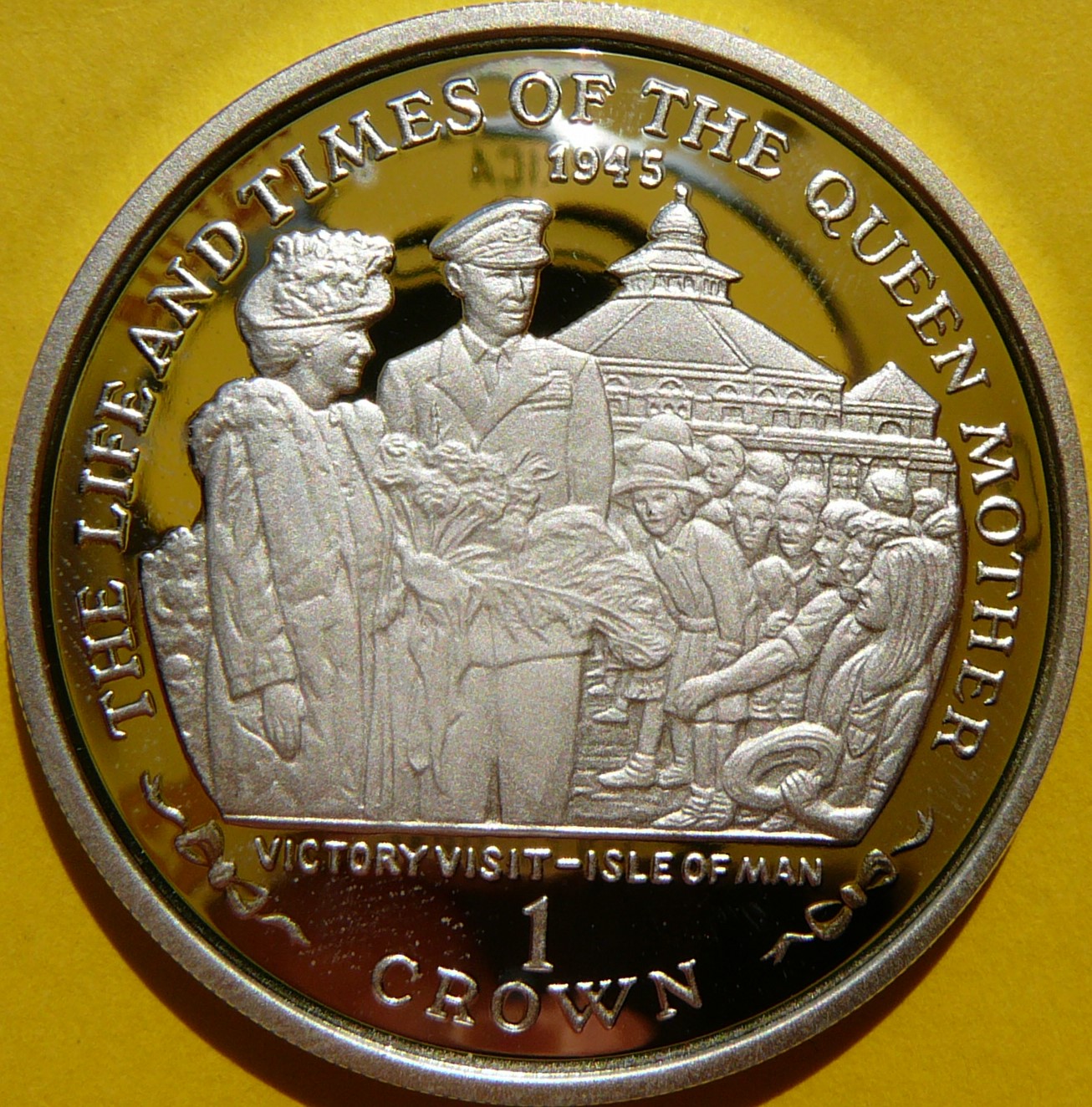 АУКЦИОННАЯ КРАСИВАЯ, ОРИГИНАЛЬНАЯ КОЛЛЕКЦИОННАЯ СЕРЕБРЯНАЯ МОНЕТА - КОРОНА - ОСТРОВ МЭН 2000 г. - ВИЗИТ КОРОЛЕВЫ ВИКТОРИИ НА ОСТРОВ МЭН 1945 г. - монета из серии: ЖИЗНЬ КОРОЛЕВЫ ЕЛИЗАВЕТЫ КОРОЛЕВЫ МАТЬ - СЕРЕБРО 925 ПРОБЫ - МОНЕТНОЕ ИЗДЕЛИЕ - ВЫПУЩЕНО POBJOY MINT LTD - НА ДРУГИХ АУКЦИОНАХ ДРУГИЕ ТРИ МОНЕТЫ ИЗ ЭТОЙ СЕРИИ, КАК ПОКАЗАНЫ НА ПОСЛЕДНИХ ФОТОГРАФИЯХ - ПОЖАЛУЙСТА, ПРОВЕРЬТЕ АУКЦИОН