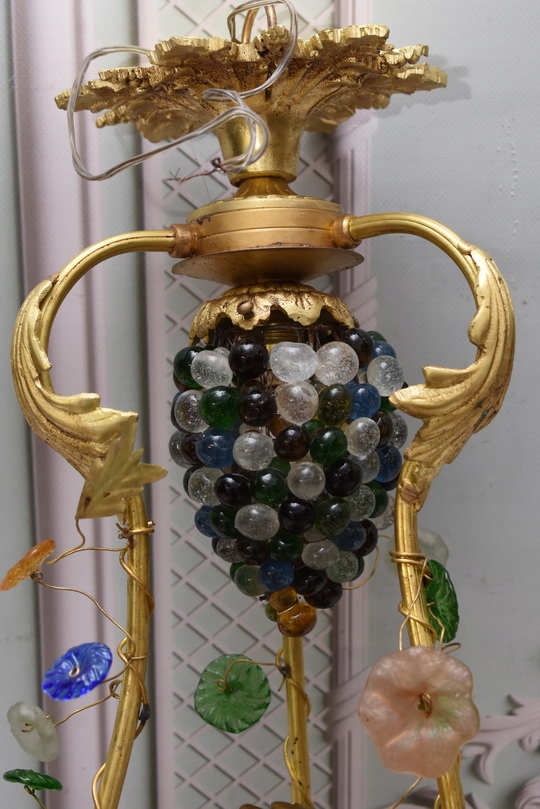 Уникальная коллекционная лампа из массивной позолоченной бронзы и муранского стекла ручной выдувки.
