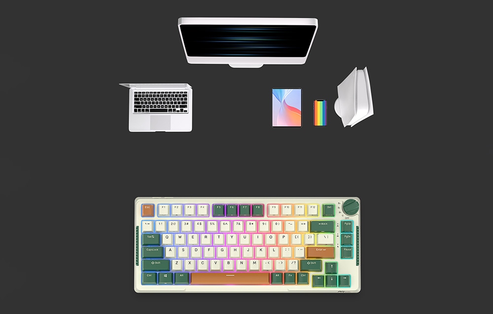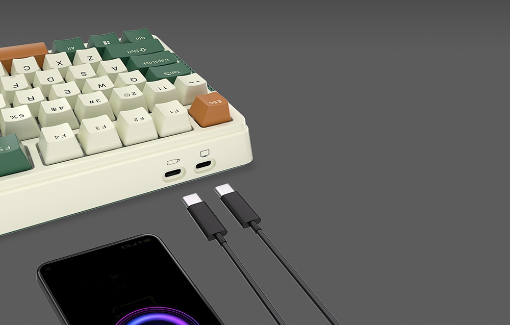 Royal Kludge Keyboard была создана для многих сценариев использования. Он был оснащен 2 портами USB-C, поэтому вы можете одновременно подключить к нему несколько оборудования. Он совместим с телефонами, устройствами массового хранения, мышами, наушниками, и это еще не все! Более того, в наборе вы найдете специальное покрытие, которое защищает клавиатуру от пыли и воды. Кроме того, если вы фанат игр, эта клавиатура также для вас! Это позволяет вам свободно менять переключатели, и специальный ключ, прикрепленный к набору, облегчит эту задачу.