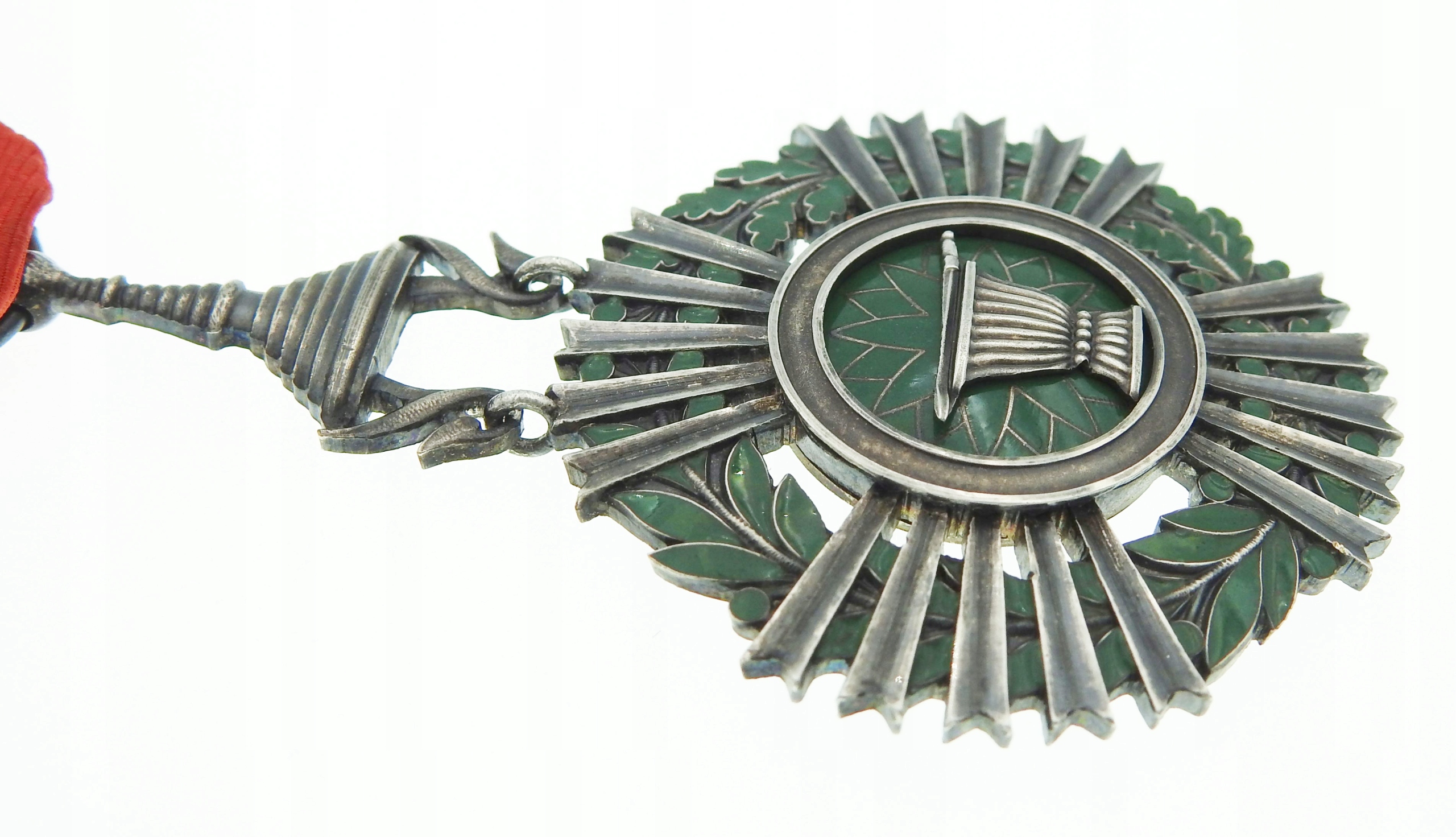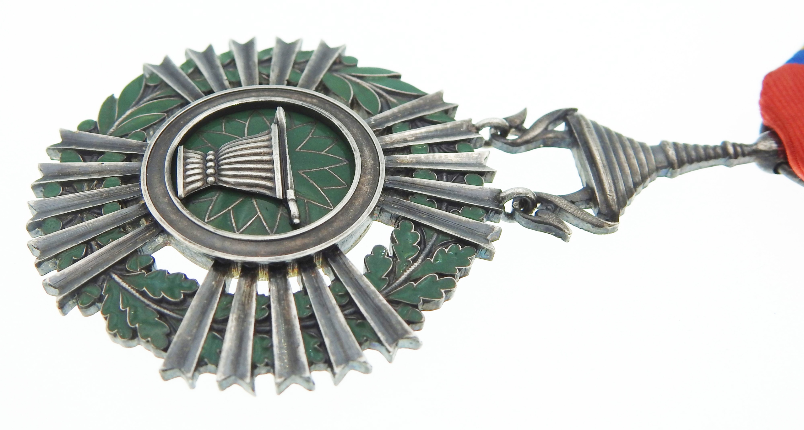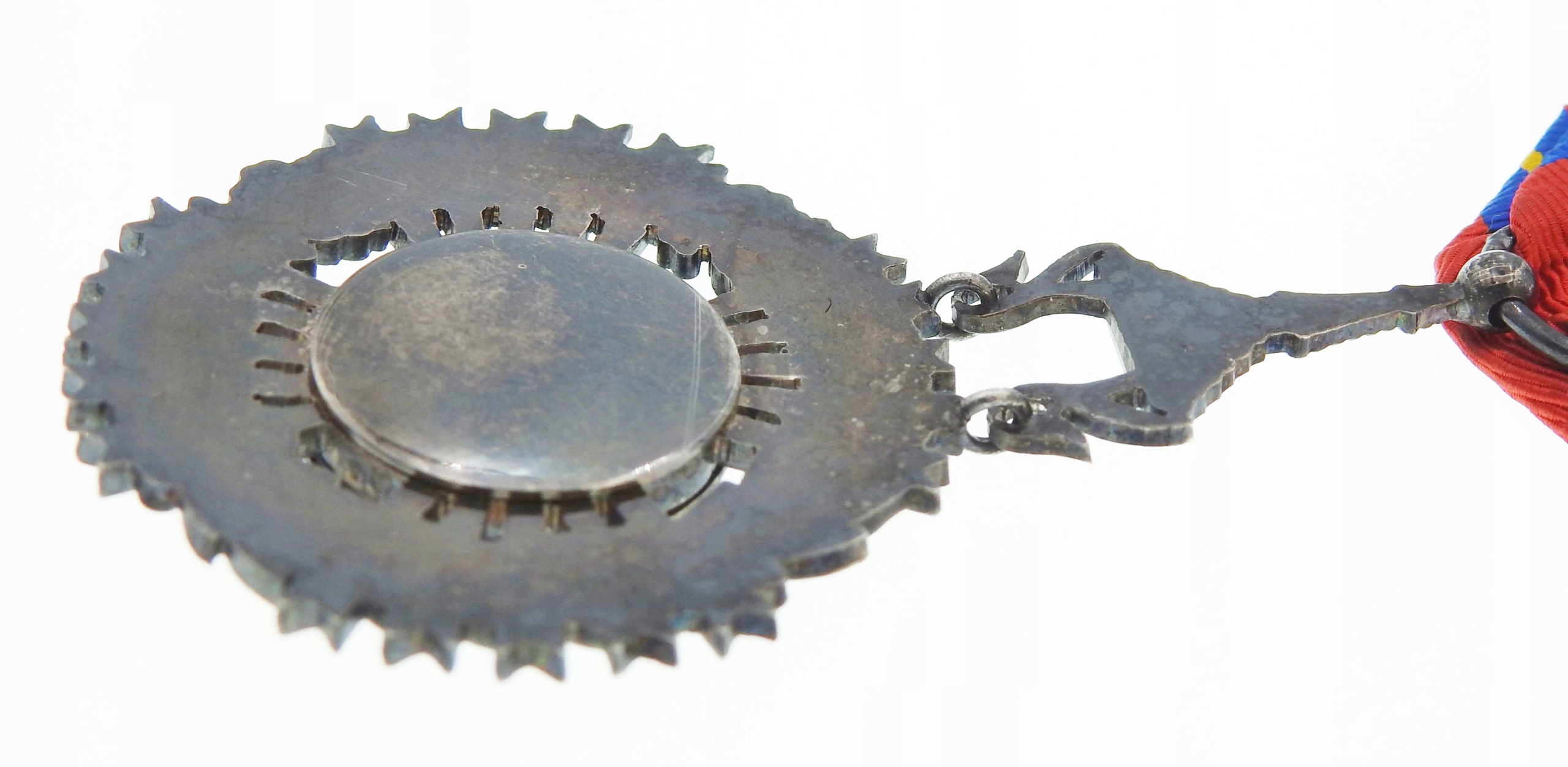 значок со значением: ~73 х 43 мм (пример вместе с кулоном) + лента, серебро, вес ~21,6 г, эмаль, многочастная, слабо видна маркировка с клеймом производителя на кольце, б/у, состояние на фотографиях, оригинал