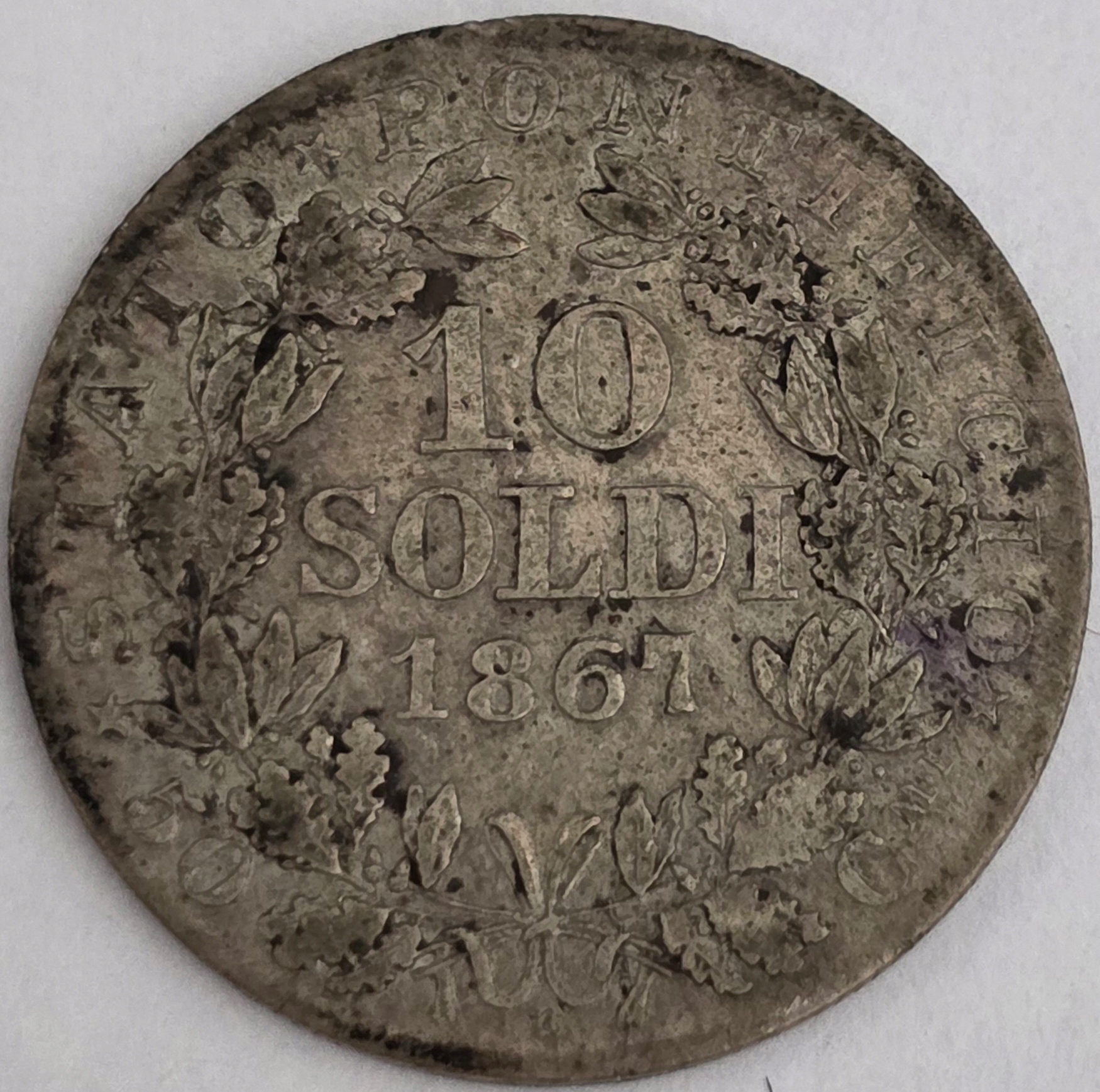 Монета Королевство Польша 10 сольди 1867 года Ватикан Пий IX оригинал! А72