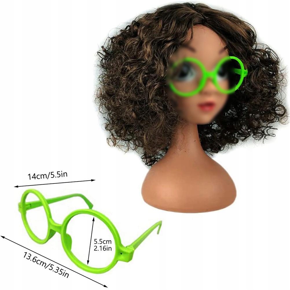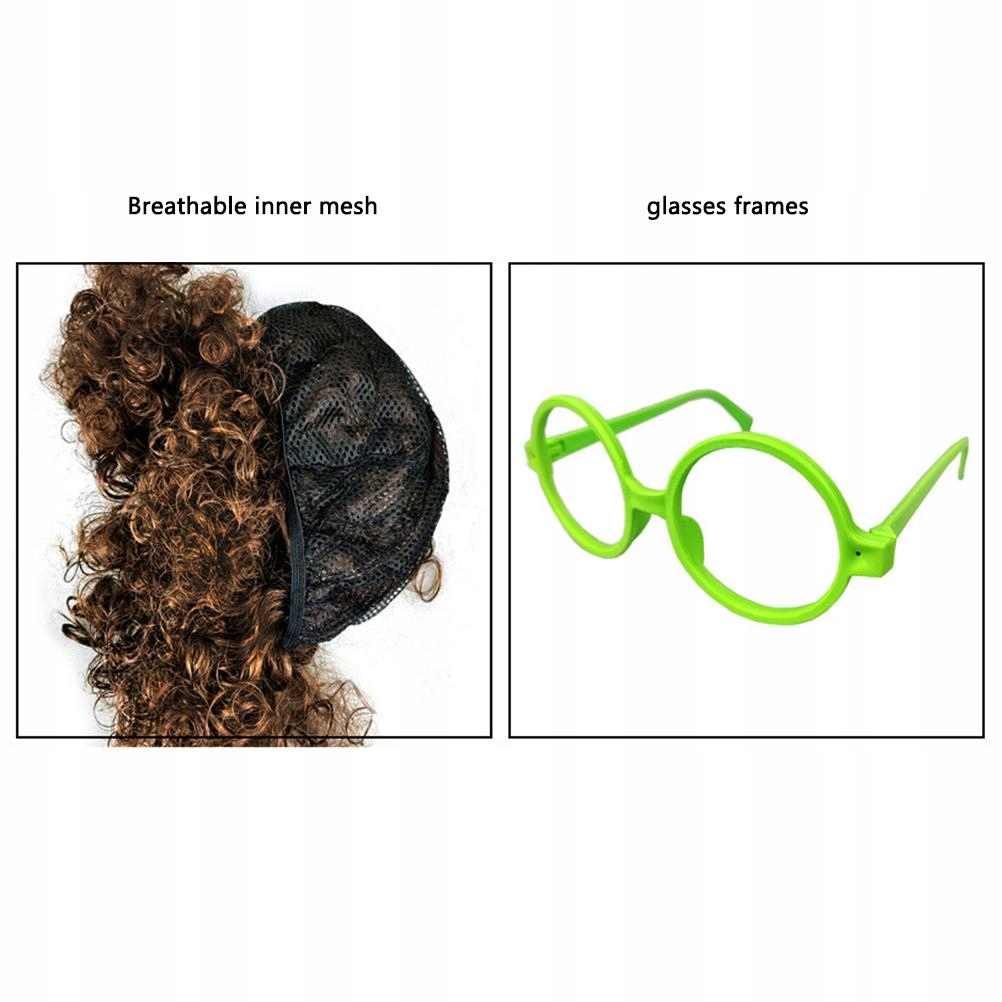 Мультфильм Косплей Детский парик Костюм Платье Волосы с очками Оправы Маскарад Короткие вьющиеся волосы Одеваются Хэллоуин Косплей Аксессуар Опора