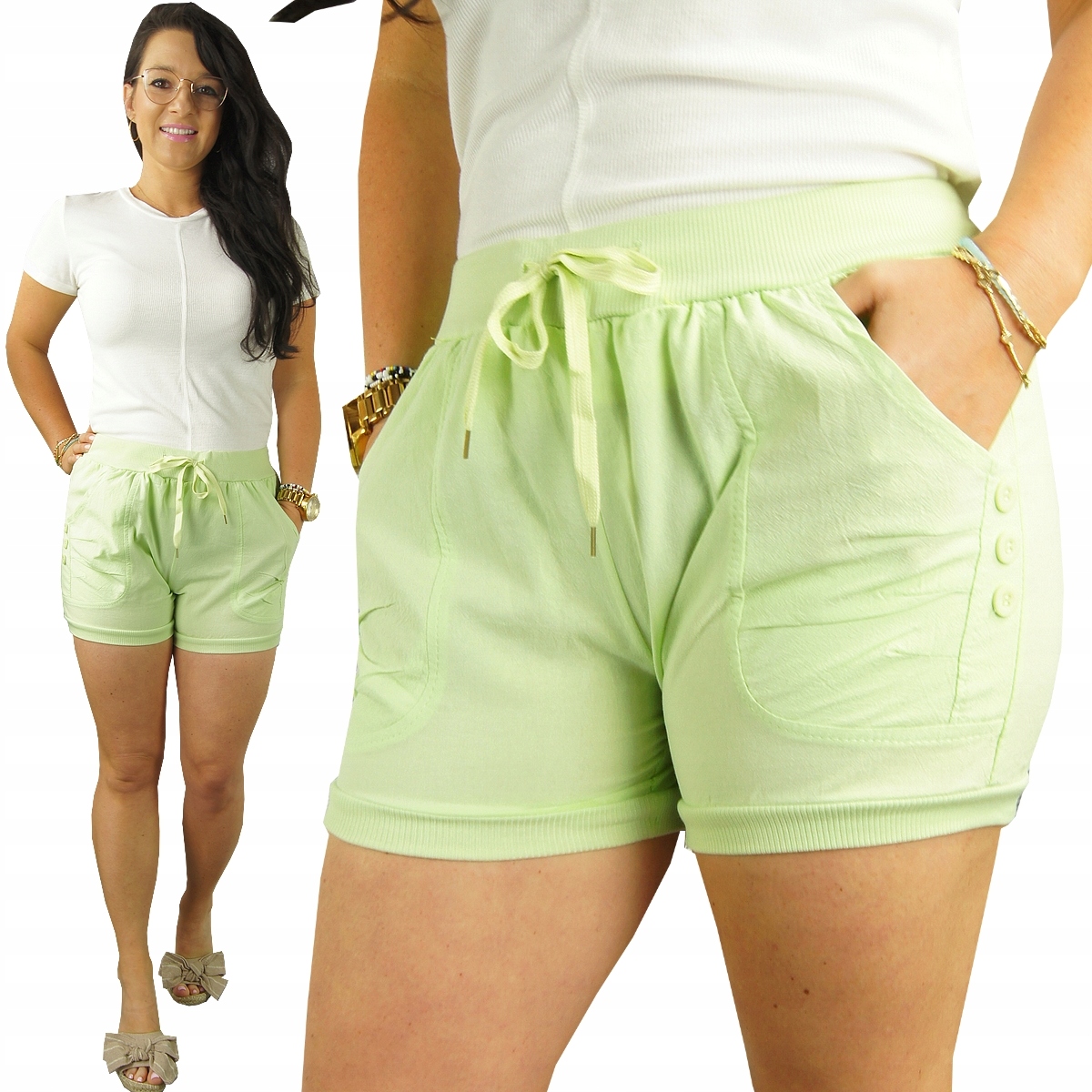 Везде, где вы хотите чувствовать себя комфортно и выглядеть феноменально Модель из последних тенденций коллекция в модных цветах. Шорты имеют два кармана спереди. Эластичная лента и шнурок на талии обеспечивают идеальную регулировку. Натуральный хлопок обеспечивает воздухопроницаемость и комфорт в жаркие дни.