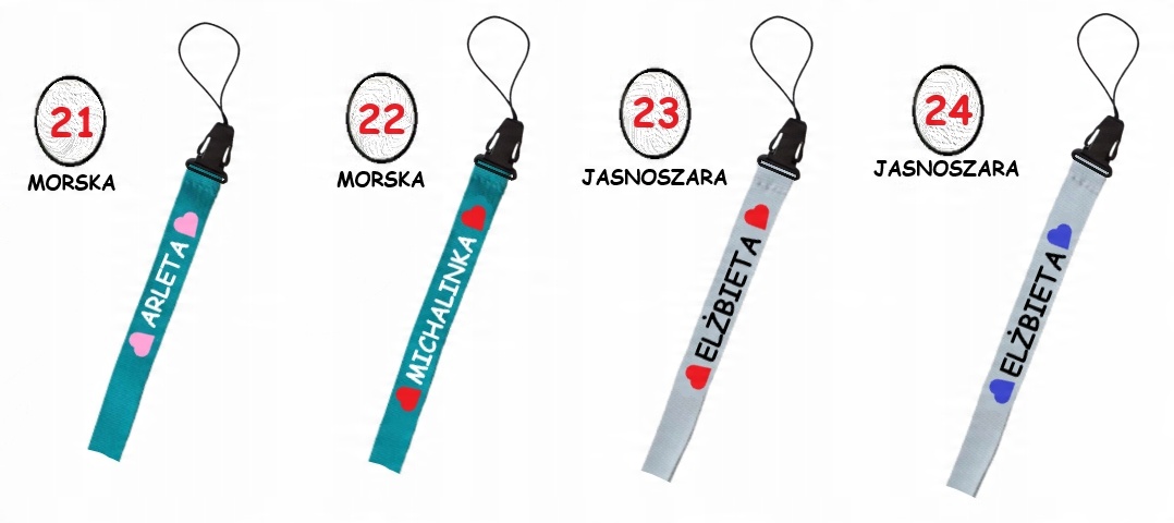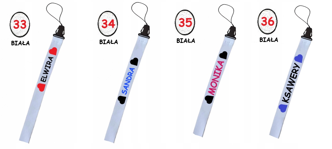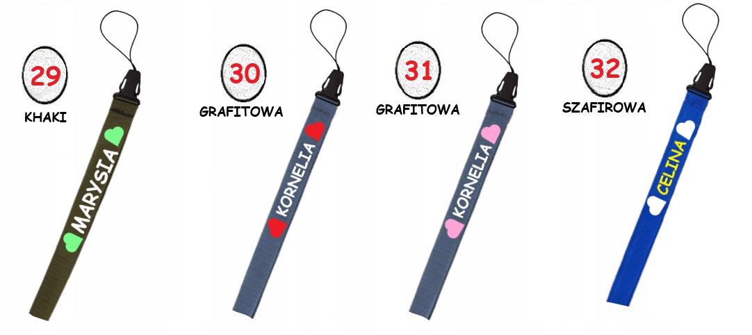 * Повод во многих цветах на выбор, включая черный, белый, синий, бордовый, зеленый, красный, желтый и т. Д. Одна страница (также в разных цветовых версиях) - из -за мелкой поверхности печати можно разместить только имя или Имя + Первая буква фамилии