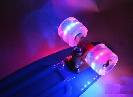Доска оснащена колесами, которые загораются при движении скейтборда! Для их освещения не требуются батарейки, поскольку они работают по принципу генерации магнитной энергии, которая генерируется при вращении колес.