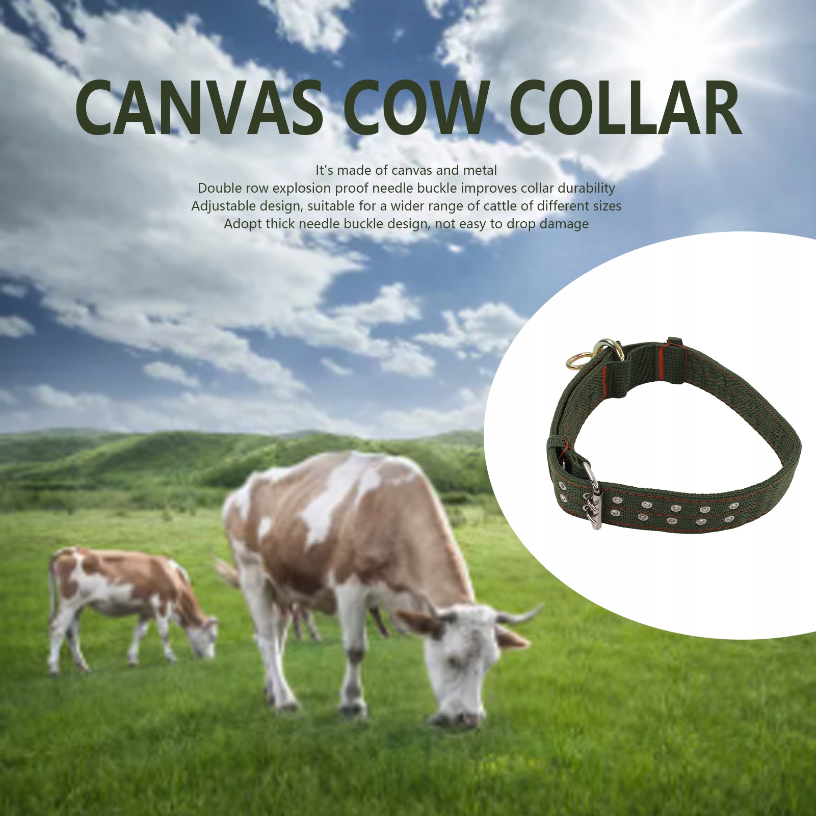 Особенность:1. Прочный материал: коровий ошейник изготовлен из холста и металла, четыре слоя холста толстые и прочные.