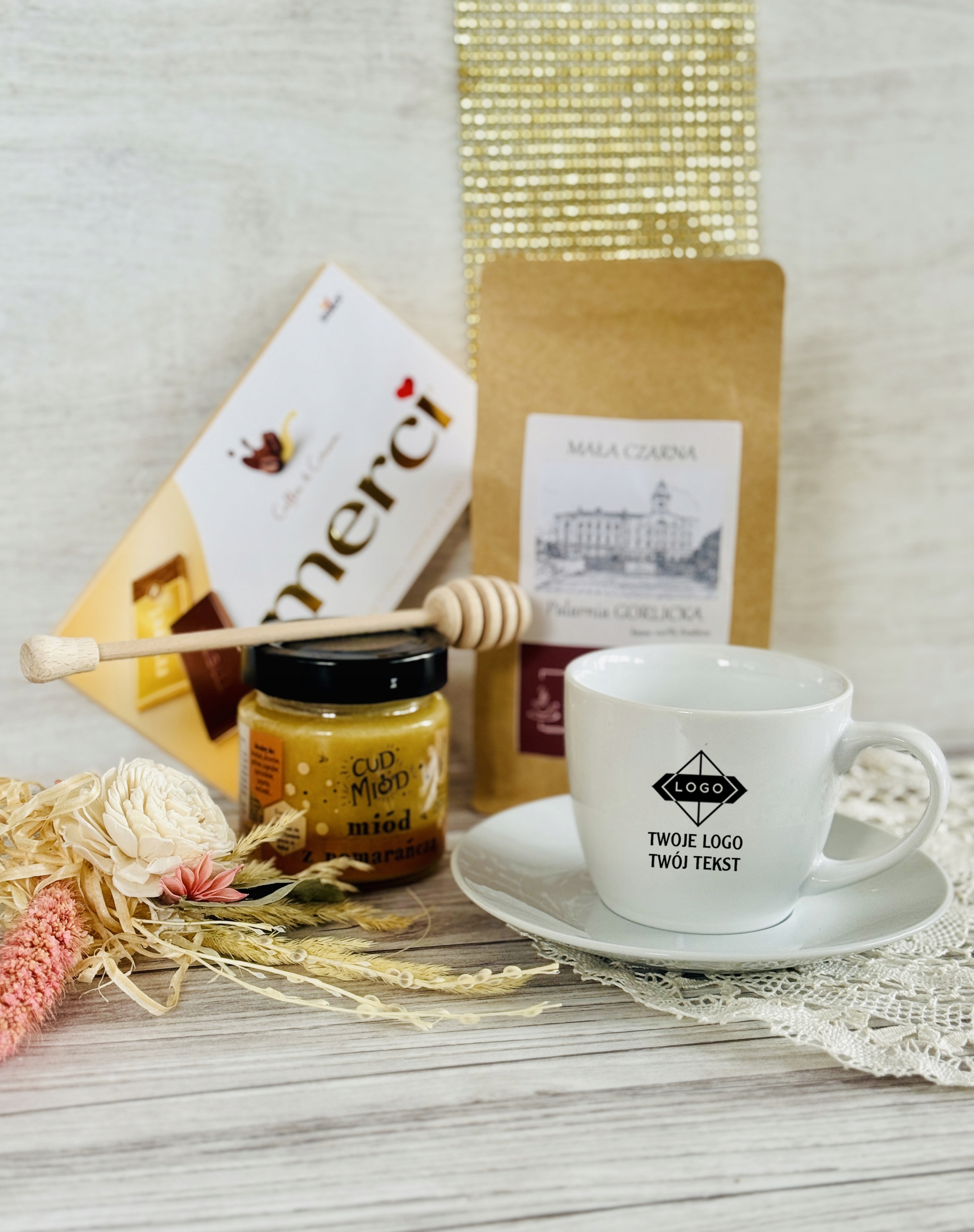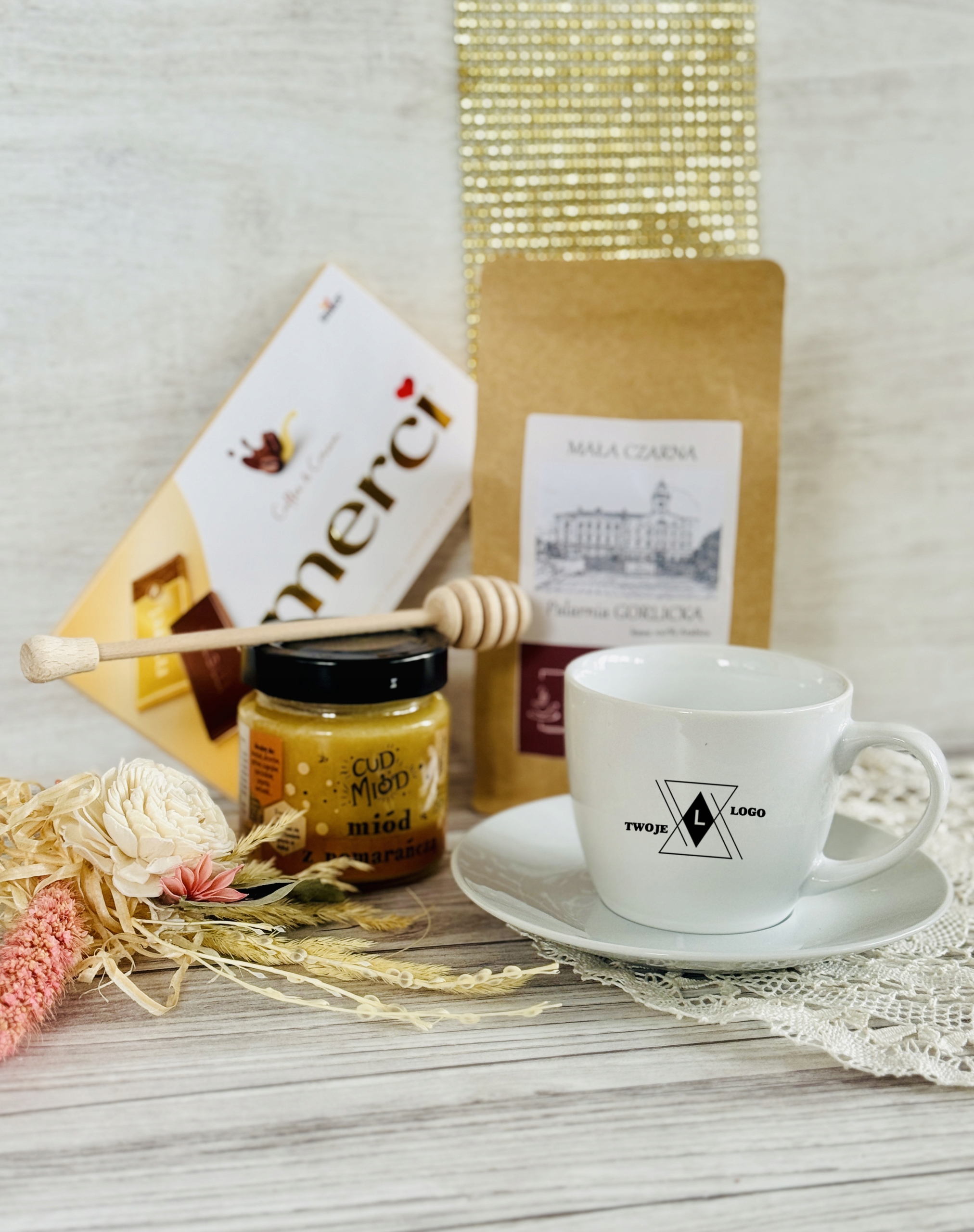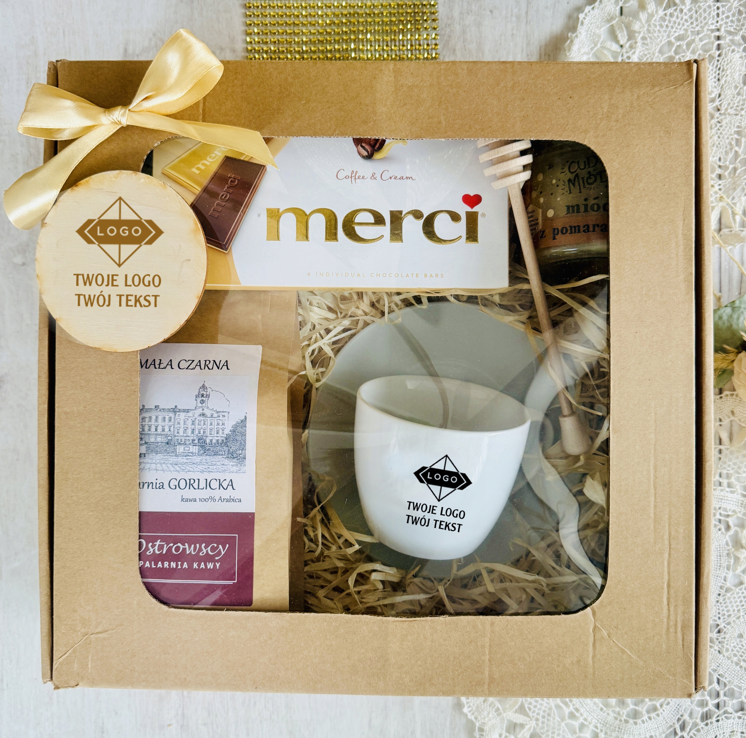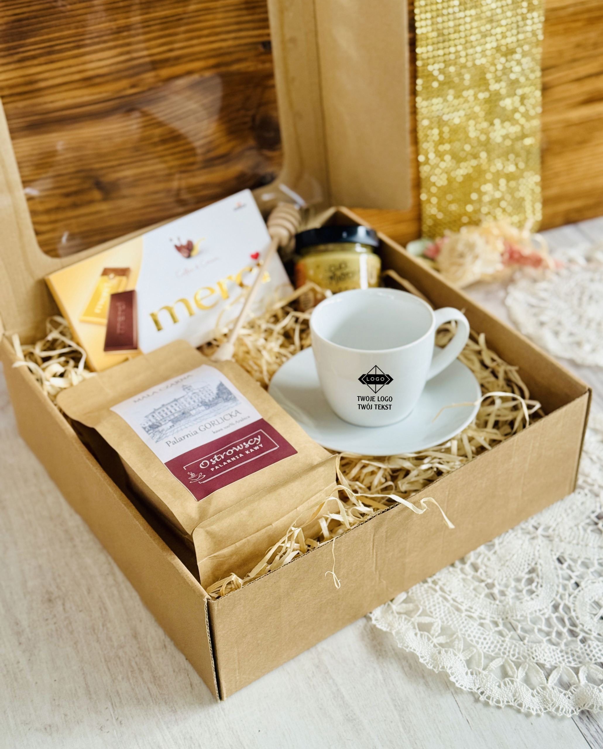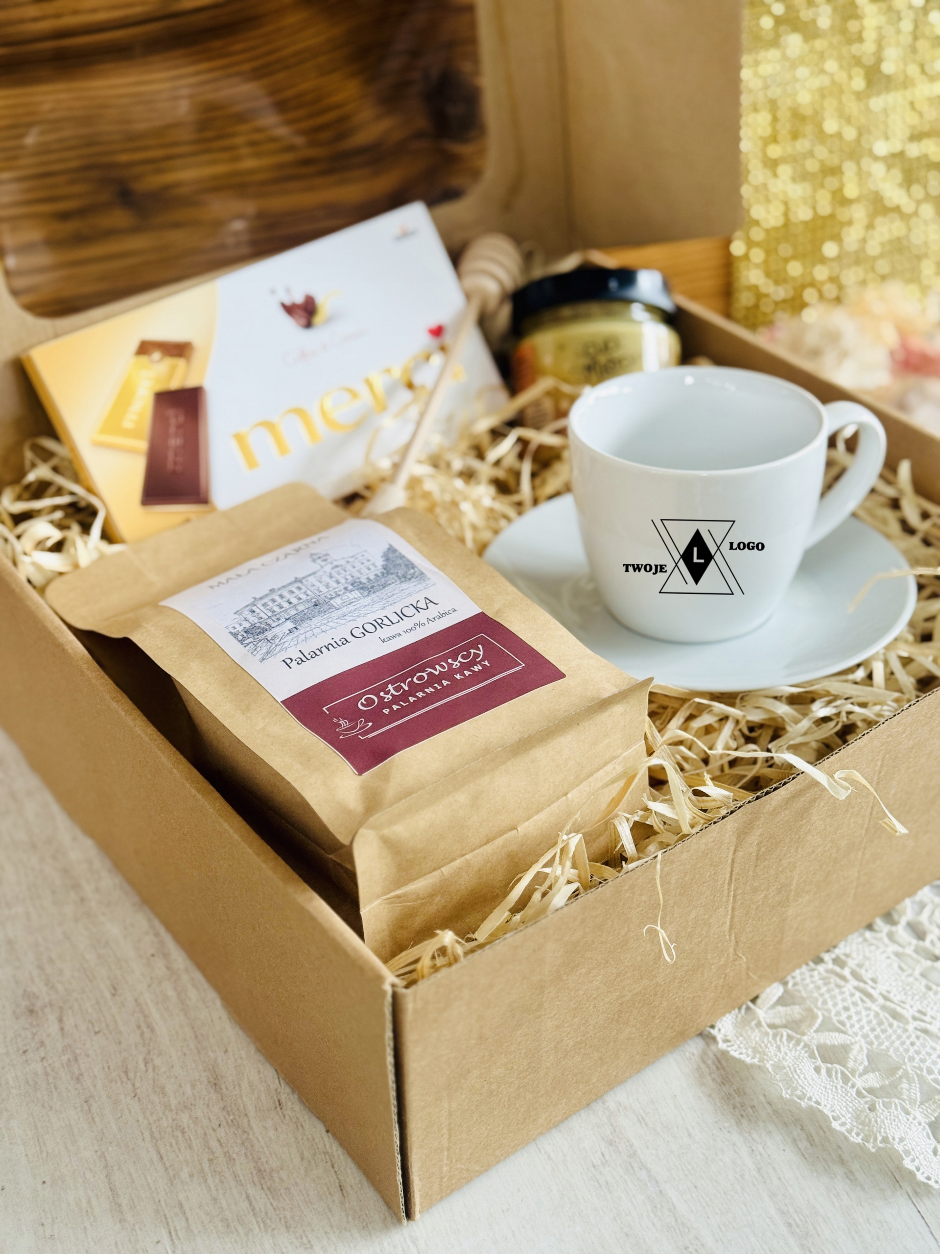 Этот элегантный набор — это сочетание вкуса, отдыха и повседневного удовольствия. Чашка с логотипом компании становится практичным гаджетом, используемым каждый день, благодаря которому бренд остается на виду. Ароматный кофе, сладкий шоколад и натуральный мед создают набор, который ассоциируется с минутой отдыха, комфортом и вниманием к деталям.