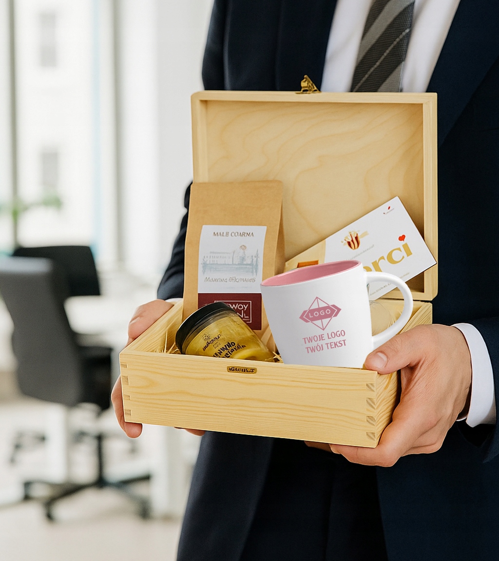 Этот элегантный набор в коробке с принтом – это сочетание вкуса, отдыха и повседневного удовольствия. КРУЖКА с логотипом компании становится практичным гаджетом, используемым каждый день, благодаря чему бренд остается на виду. Ароматный кофе, сладкий шоколад и натуральный мед создают набор, который ассоциируется с минутой отдыха, комфортом и вниманием к деталям.