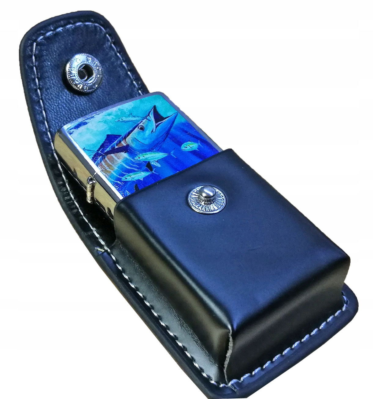 Чехол - черного цвета - из эко-кожи - защищает бензиновые зажигалки от повреждений.