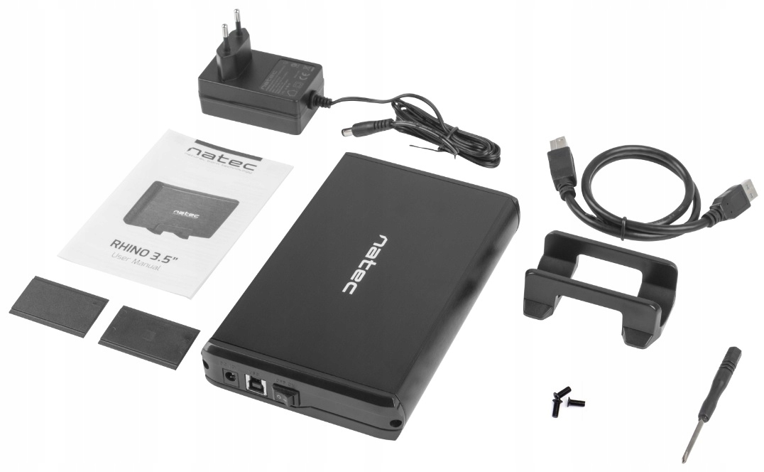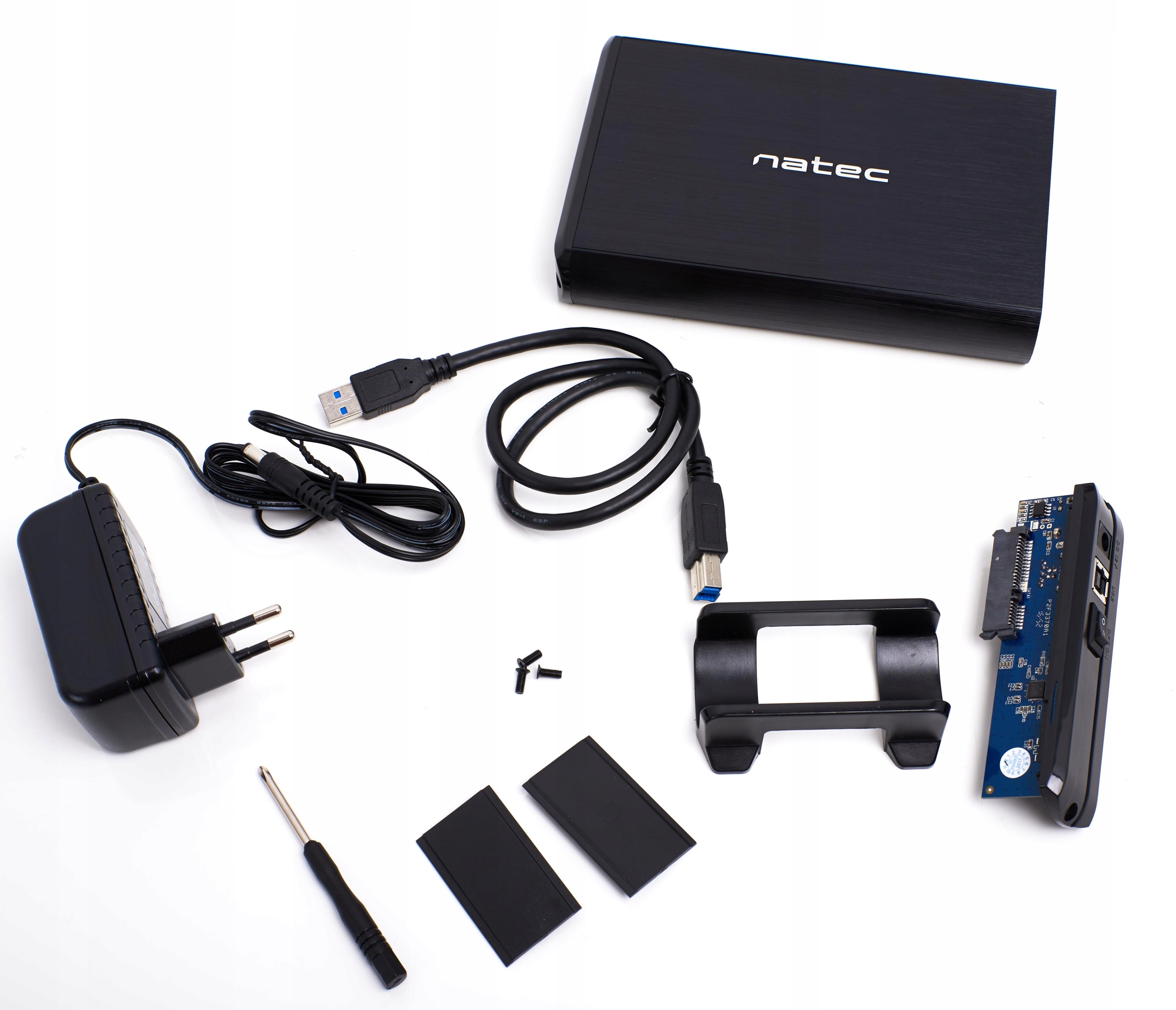 В комплект входит блок питания, кабель USB 3.0 и отвертка для установки. Кроме того, корпус совместим с большинством 3,5-дюймовых дисков SATA и обеспечивает очень хорошую защиту и отвод тепла благодаря алюминиевому корпусу.