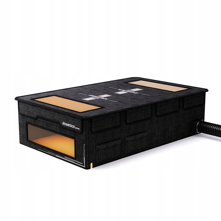 Не имеет запаха и защитит ваше здоровье: с Atomstack Maker FB2 Плюс кейса, вы можете изолировать загрязняющие вещества, возникающие при лазерной резке: PM2,5/PM10/формальдегид/TVOC и т.д. и удалять вредные газы наружу через удлинитель. Здоровье бесценно.
