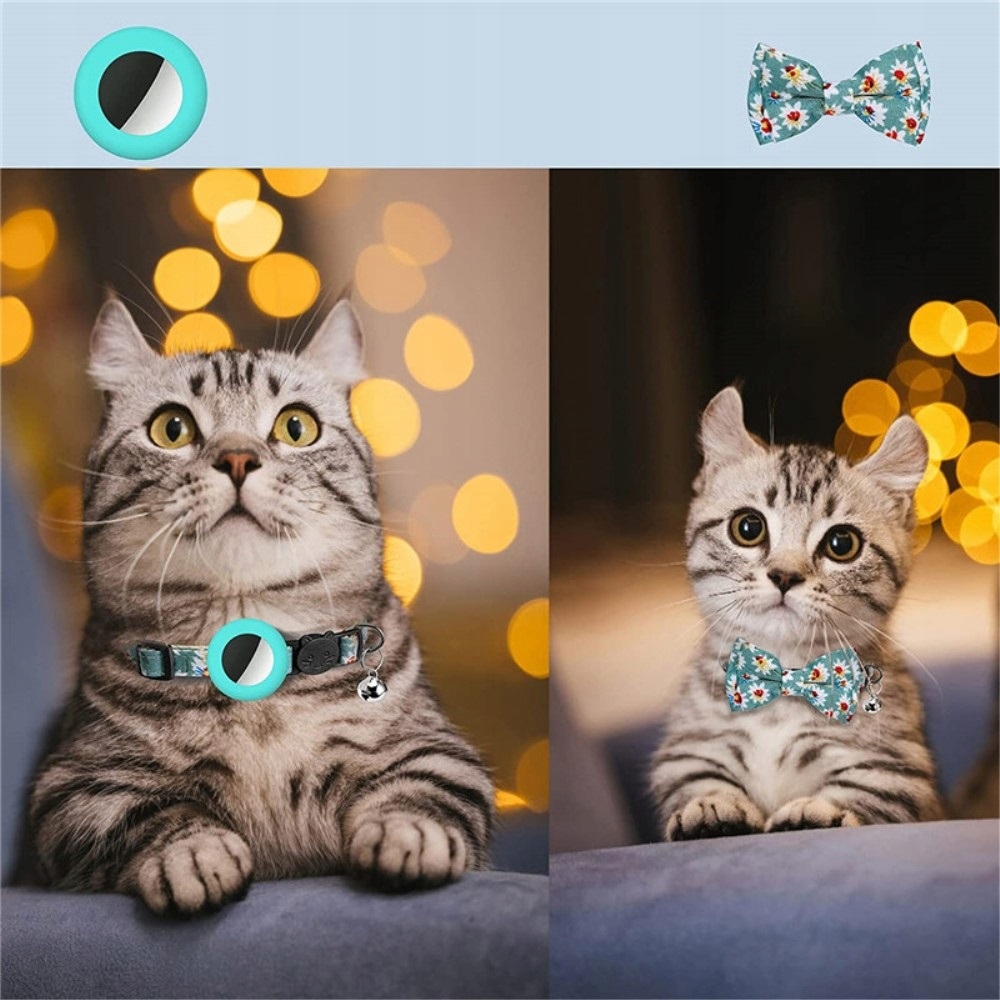 воротник с галстуком -бабочкой и колоколом для Apple Airtag, с фольгой, зеленым