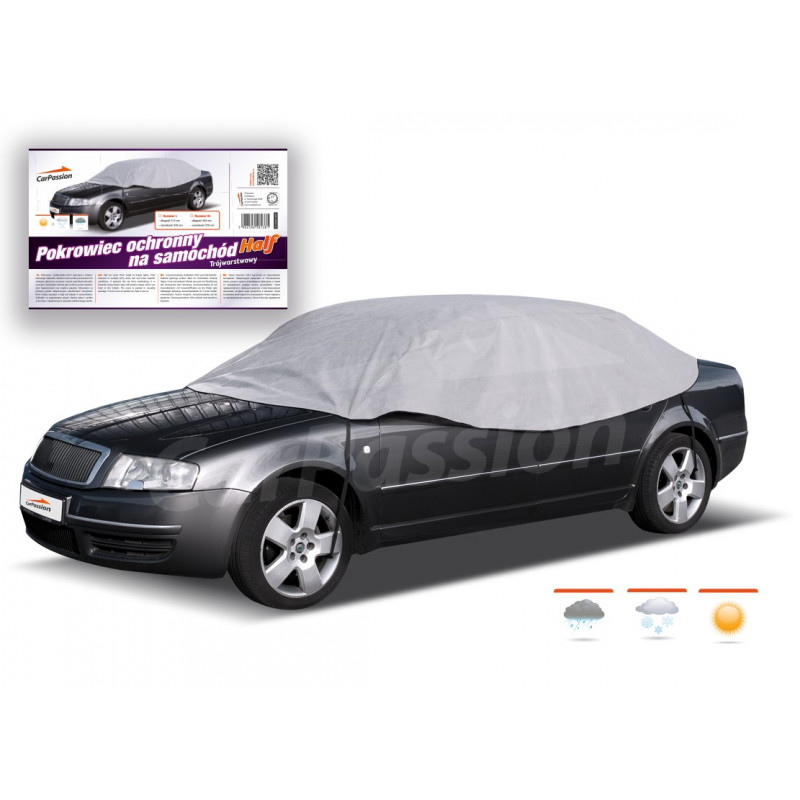 ПолубрезентHALF изготовлен из трехслойного материала, прекрасно защищает от УФ лучей и < б>снег, дождь, мороз и другие атмосферные факторы, а также от чрезмерного нагревания салона автомобиля. р>