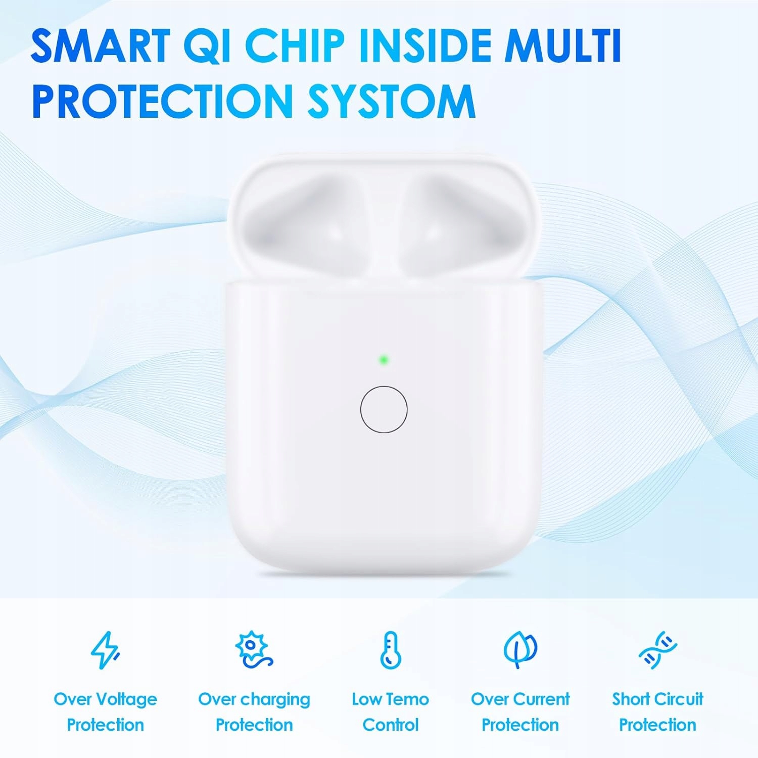 - Легкое соединение с синей технологией - корпус зарядки для наушников используется не только для зарядки, но и для синхронизации с iPhone или iPad. Он оснащен кнопкой синего цвета для легкого соединения. Наш случай для зарядки наушников оснащен лучшим чипом для повышения производительности. Защищает устройство от короткого замыкания, переполнения, перенапряжения и перегрузки.
