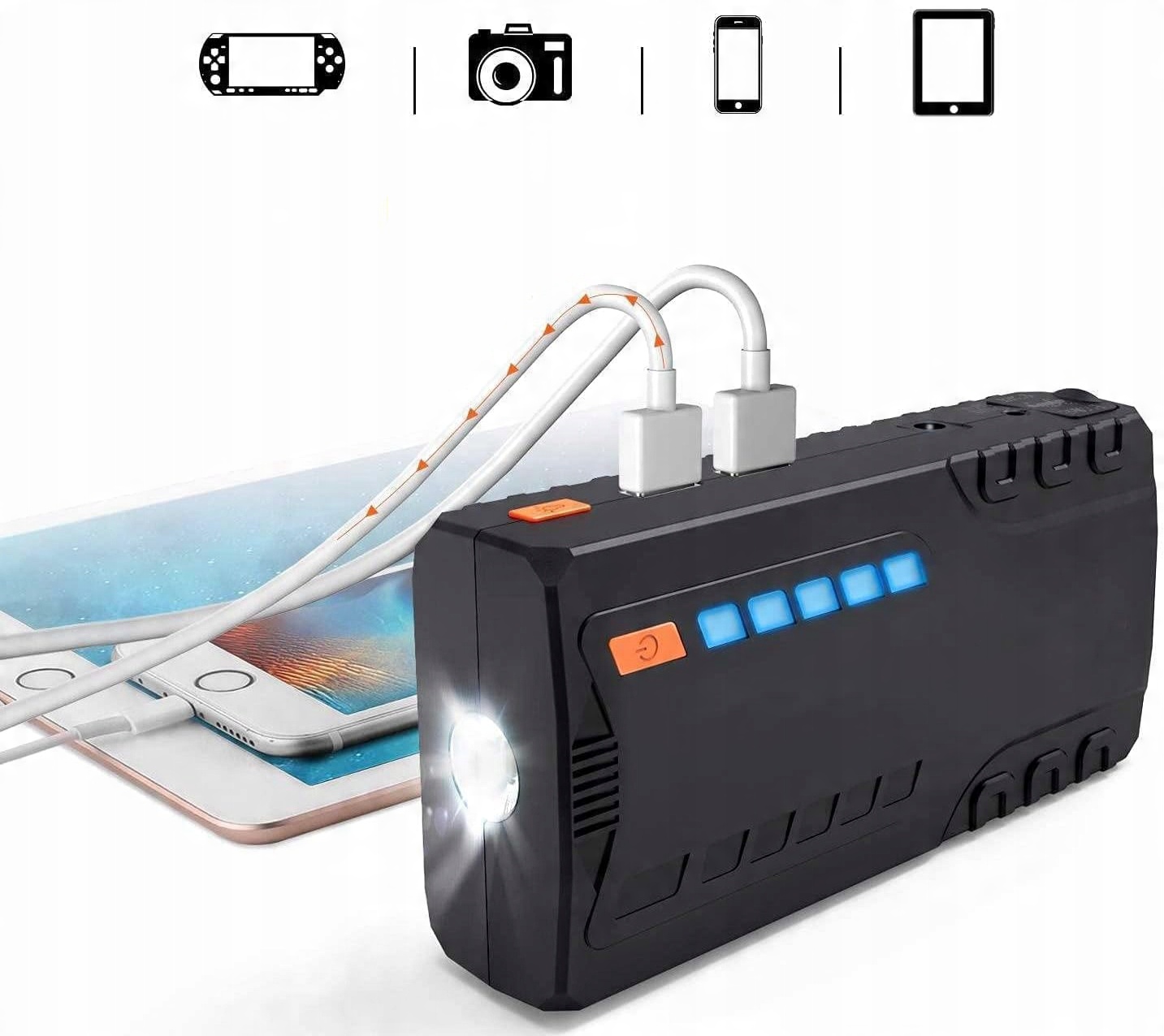 - Портативный автомобильный стартер - идеален для морозного утра, когда автомобильный аккумулятор разряжен,