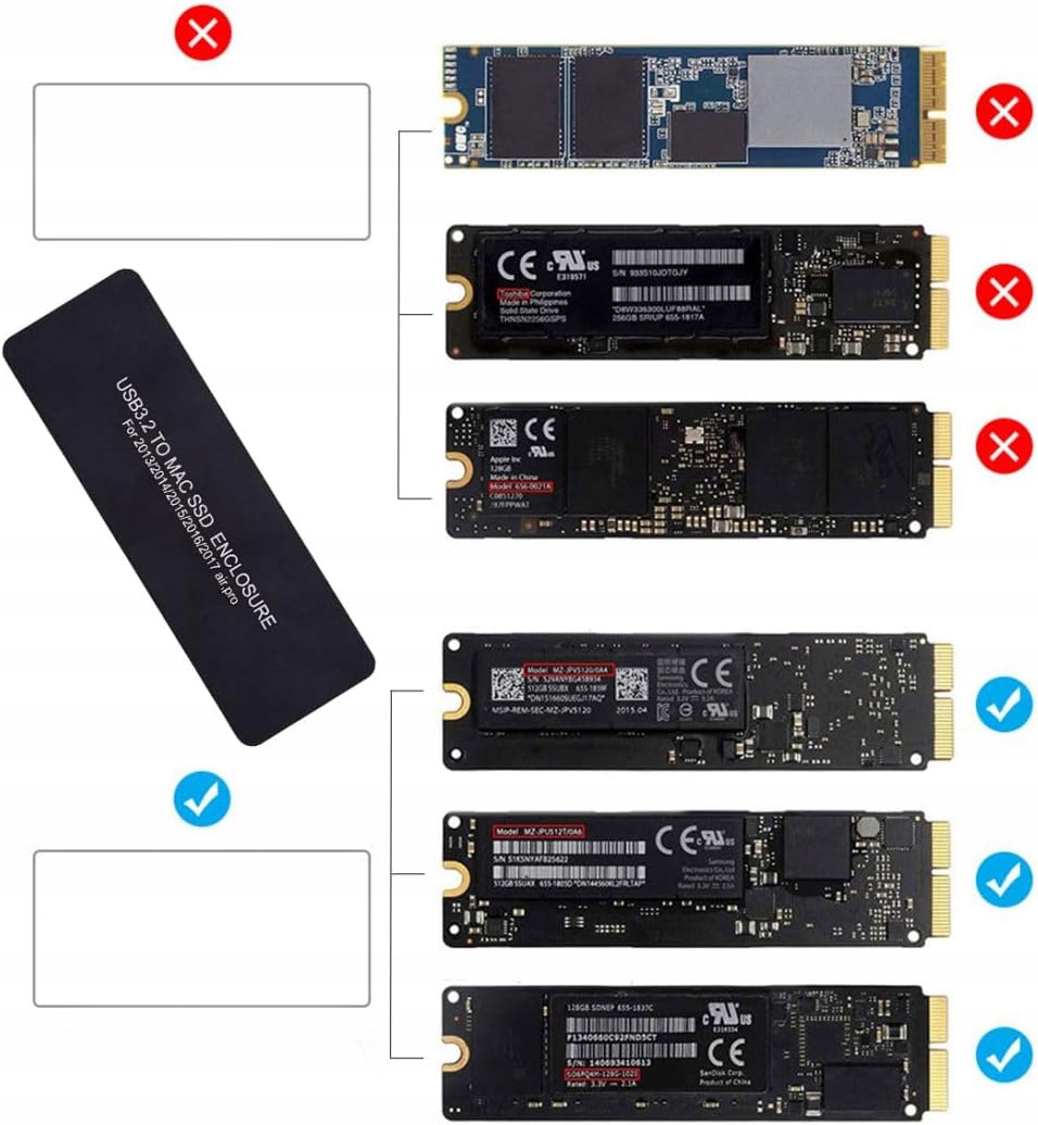 Мы представляем портативный чехол для SSD, идеально подходящий для ноутбуков Mac Air и Pro 2013–2016 годов. Этот продукт был разработан для простого и удобного использования. Корпус поддерживает стандарт 1612 контактов, что обеспечивает полную совместимость с устройствами Apple. Благодаря интерфейсу Micro USB 3.0 пользоваться чехлом просто и интуитивно понятно, а дополнительные функции, такие как Plug & Play и Горячая замена, позволяют быстро подключать и отключать накопители без необходимости выключать устройство.