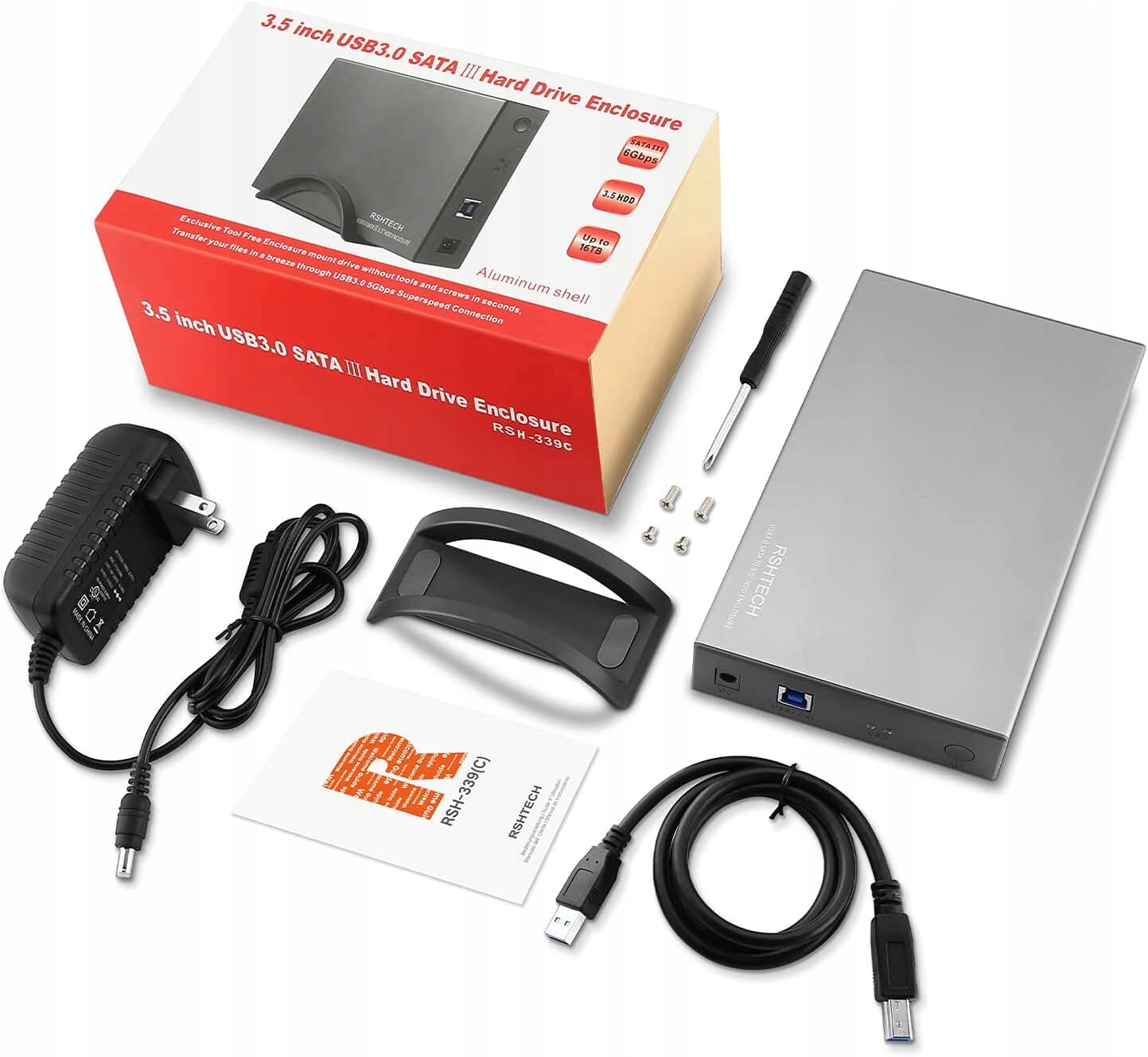 Алюминиевый внешний корпус для внешних жестких дисков RSHTECH с USB 3.0 на SATA для 3,5-дюймовых жестких дисков SSD емкостью до 16 ТБ, совместимость с UASP (RSH-339)