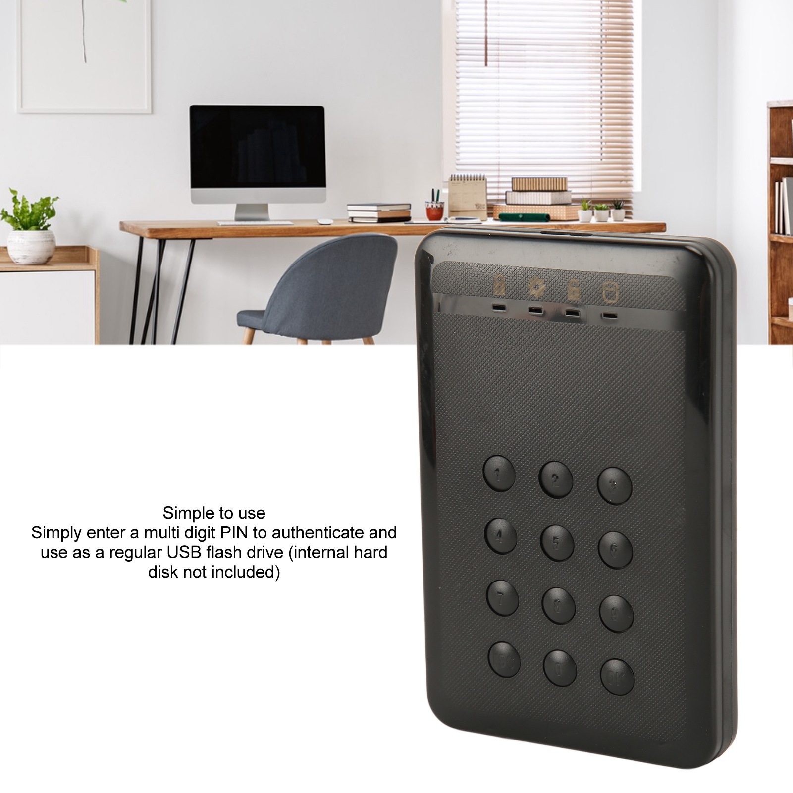 2. Простота в использовании: просто введите многозначный PIN-код для аутентификации и использования в качестве обычного USB-накопителя (внутренний жесткий диск не входит в комплект).
