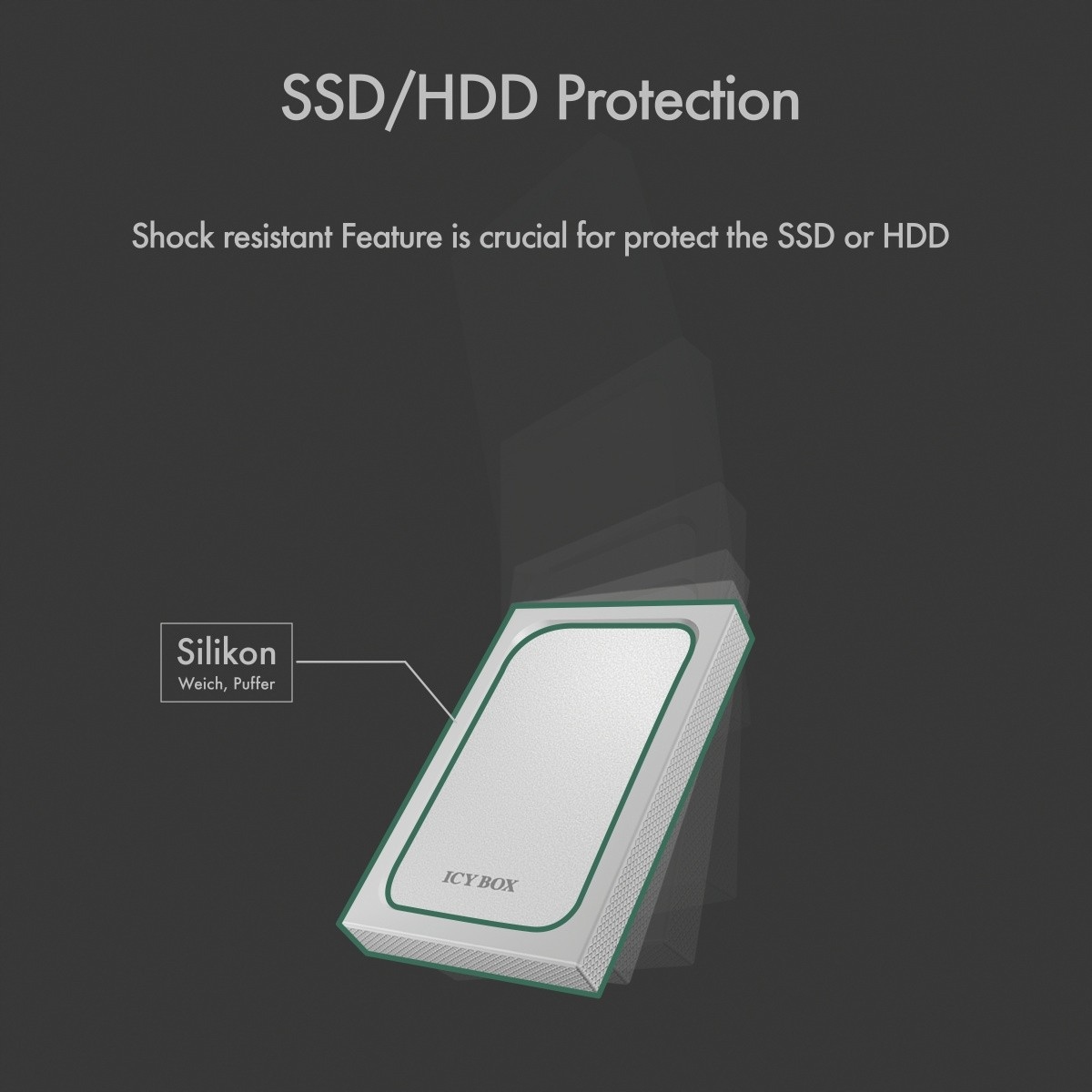 IB-254U3 Внешнее корпус для 2,5 дюйма с интерфейсом USB 3.0, изготовленным из алюминия, и с силиконовым корпусом функциями - алюминиевый корпус + силиконовый рам- установка без Использование инструментов- поддержка HAST и SAPA III HARD DIRIVES 6 ГБ / S / SSD-USB 3.0 HOST до 5 Гбит / S- Обратная совместимость с USB 2.0 и 1,1- Высота привода до 9,5 мм, без ограничения грудной диск. - Plug & Play, а также Hot Swap- поддержка: Windows, Mac, Linuxpodic Data Protection IIIDY. Если вы хотите достичь максимальной скорости передачи, установите очень быстрый SSD в корпусе. Полем В настоящее время USB -порты доступны практически на каждом устройстве, поэтому наше корпус можно использовать везде, где вам это нужно. Корпус изготовлен из алюминия, что делает его очень хорошими свойствами рассеяния тепла. Более низкие температуры приводят к гораздо лучшему сроку службы. Сплошная алюминиевая рама в сочетании с силиконовым покрытием делает корпус устойчивым к царапинам и ударам. Универсальное решение для всех. Этот продукт для вас! Рама изготовлен из высококачественного алюминия с интересной отделкой. Вставка, с другой стороны, сделана из белого пластика. Или фотографии быстрые и удобные! Корпус совместимо с USB 2.0 и даже 1.1. Благодаря рамке, жилье IB-253U3 получает потрясающую внешность в практическом издании. Приятно и безопасно