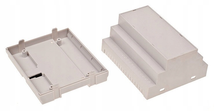 Модульные корпуса для рейки DIN – это корпуса, приспособленные для монтажа на рейку DIN. Они доступны в светло-сером цвете. Материалы, из которых мы их изготавливаем, — полистирол, АБС и АБС V0 (самозатухающий). Также можно приобрести эти корпуса с красными прозрачными фильтрами вместо белой верхней панели.