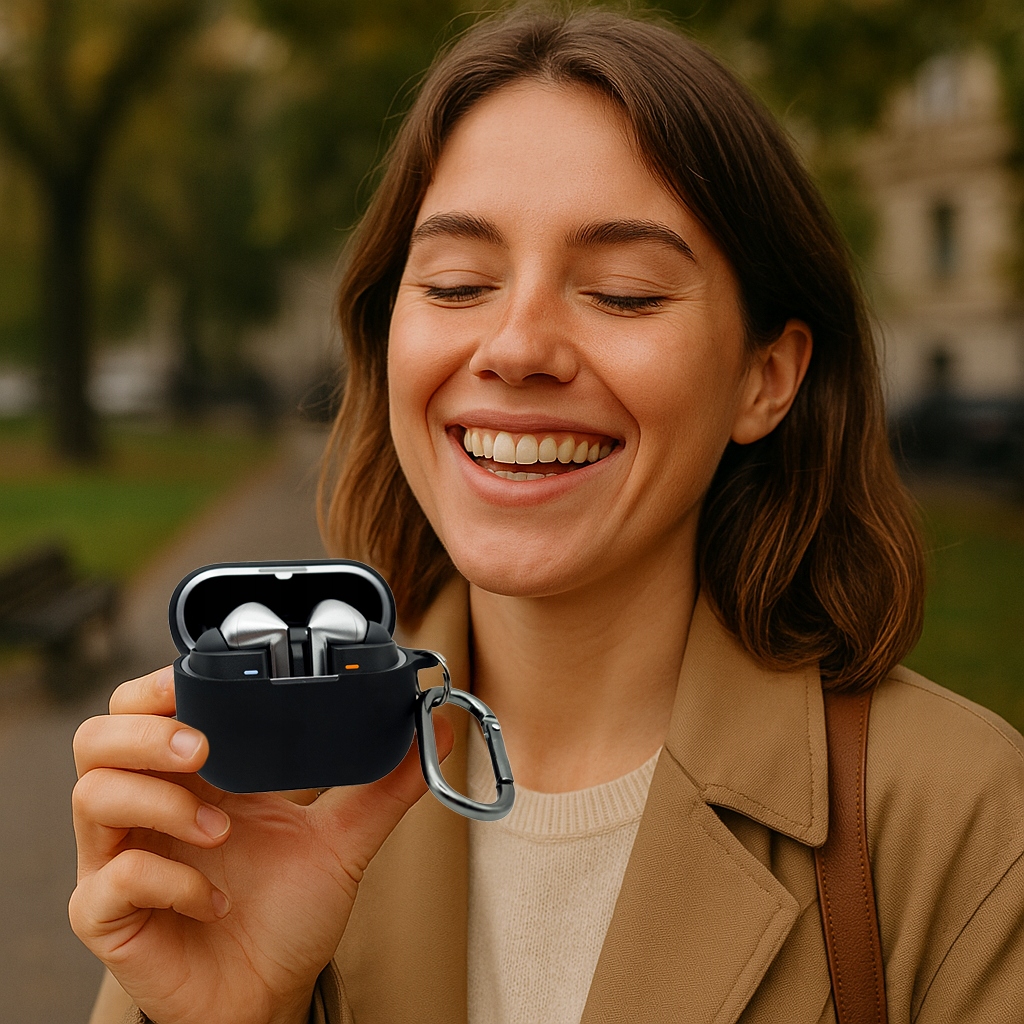 Силиконовый корпус для Samsung Galaxy Buds 3 Pro является надежной защитой вашей зарядной коробки. защищает от царапин, пыли и падения, и благодаря карабине вы всегда можете иметь под рукой наушники.