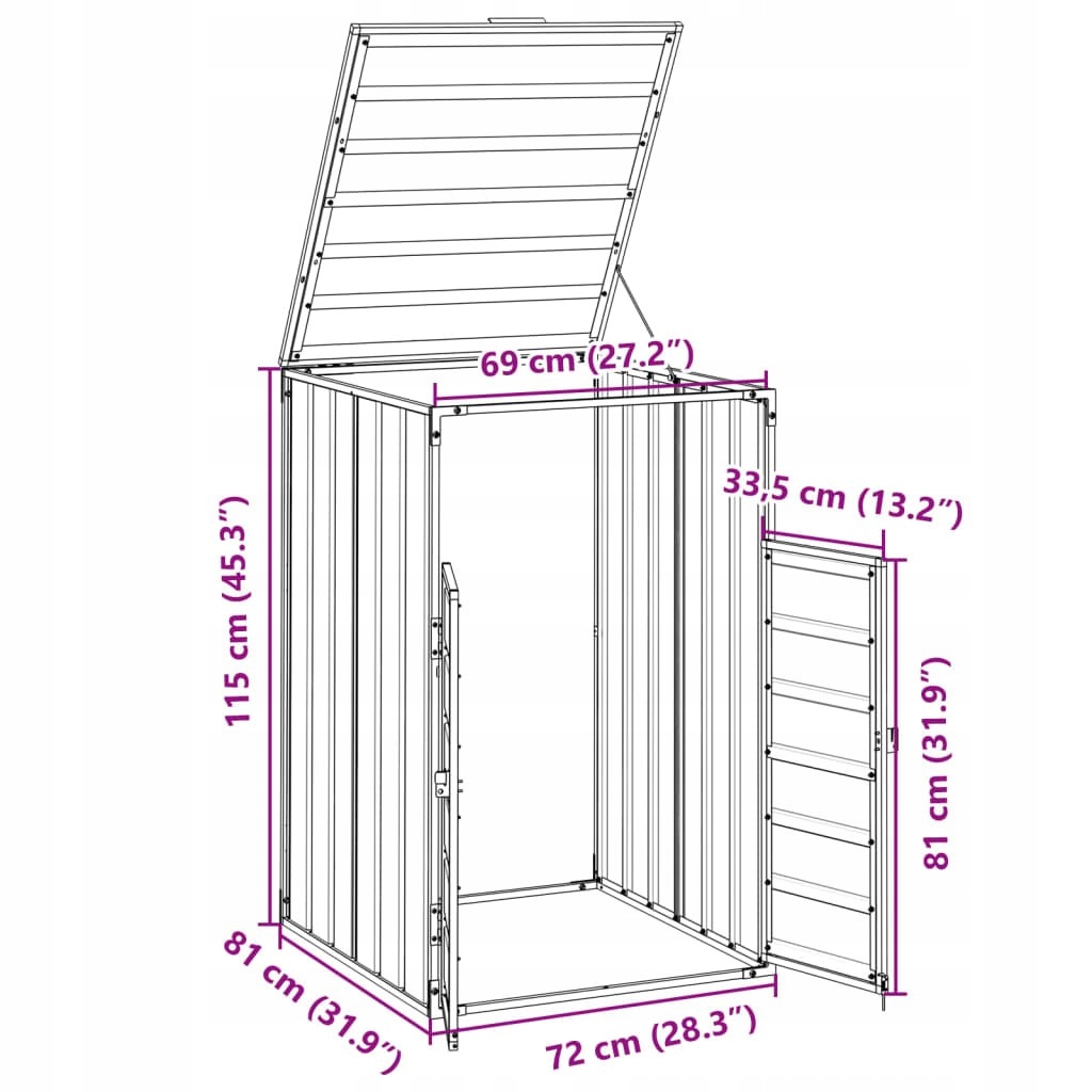 КОРПУС ДЛЯ МУСОРНОГО БАКА, ОДИНАРНЫЙ, АНТРАЦИТОВЫЙ 72X81X115CM