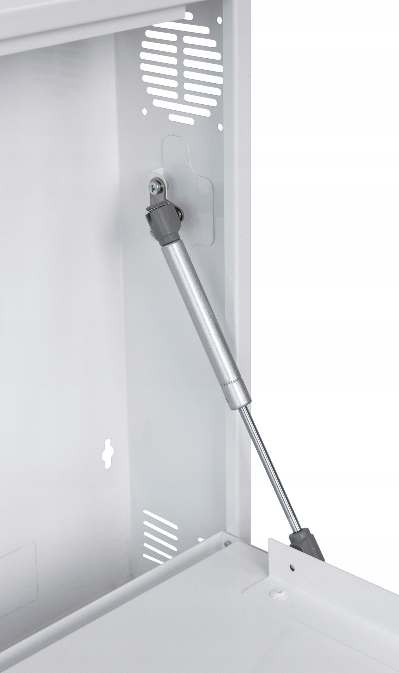Корпус оснащен специальными приводами, замедляющими открытие дверцы корпуса. Благодаря использованию данного решения риск повреждения установленного оборудования сводится к минимуму и значительно повышается комфорт использования.