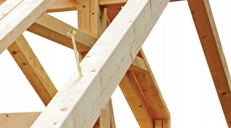Винт строительный с потайная головка и муфта ТХ для конструктивных соединений деревянных элементов, в том числе: доска массивная, клееная и древесная.