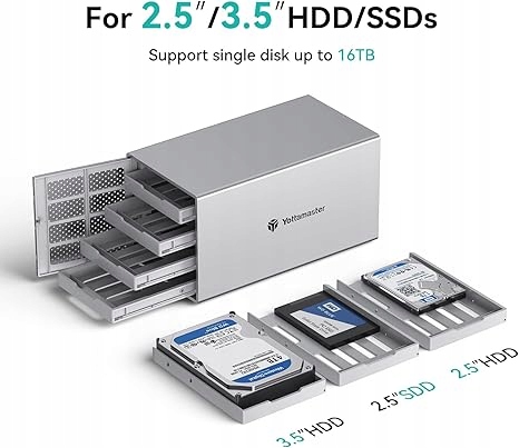 Надежная внешняя система хранения данных для частных лиц Этот корпус с 4 дисками поддерживает до 64 ТБ (4 x 16 ТБ) внешнего хранилища. Передняя дверца имеет удобную для пользователя конструкцию PUSH, упрощающую установку и замену жестких дисков. Это идеальный выбор для хранения данных дома и офиса. Поддерживает 2,5-/3,5-дюймовые жесткие диски/твердотельные диски SATA, поэтому вы сможете максимально эффективно использовать свои жесткие диски.