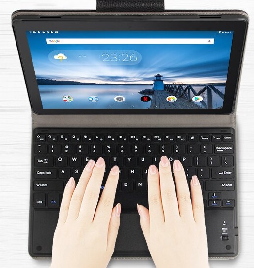 Чехол выполнен из очень прочной эко-кожи. Планшет и защита выглядят эстетично благодаря минимальной толщине корпуса. Наш планшет защищен на 100%. Вам не придется беспокоиться о царапинах или механических повреждениях. Кроме того, все слоты и кнопки открыты. Bluetooth-клавиатура очень высокого качества. Беспроводное соединение происходит мгновенно. Клавиатура оснащена встроенной сенсорной панелью.