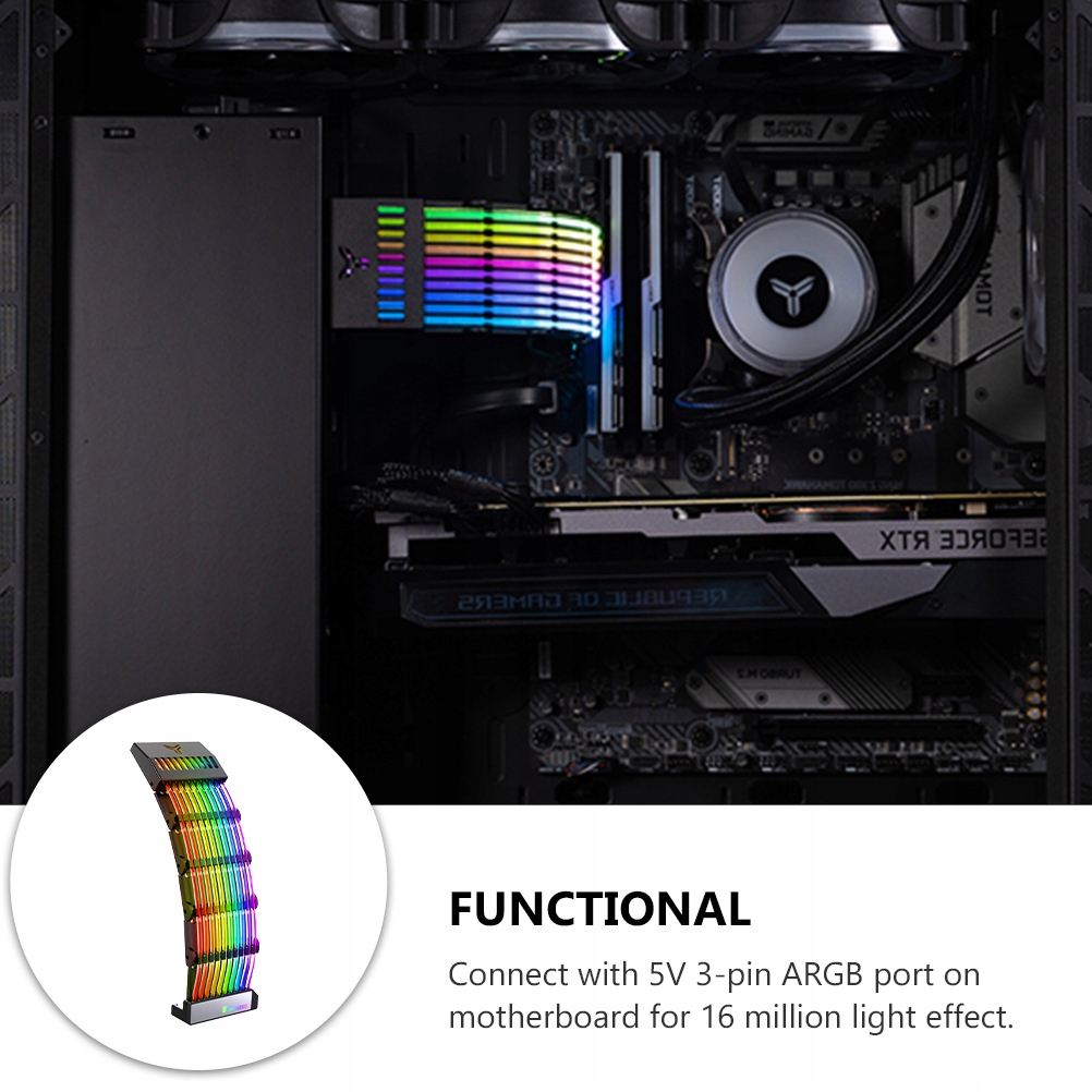 ✅Подключитесь к 3-контактному порту ARGB 5 В на материнской плате, чтобы добиться светового эффекта 16 миллионов.