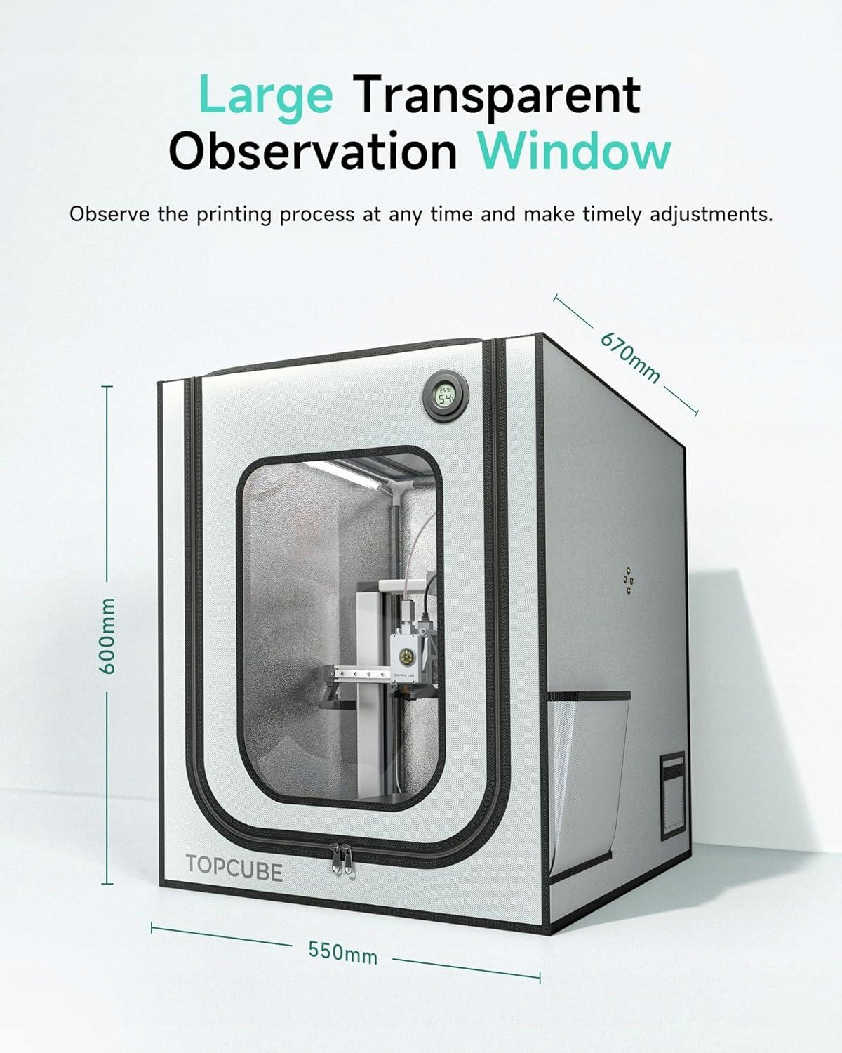 - Специально разработано для Bambu Lab A1 Combo: корпус (550 x 600 x 670 мм / 21,65 x 23,62 x 26,38 дюйма) было разработано специально для отверстий Bambu A1 для кабелей для Ams Lite и четырех пневматических взаимодействий. Перед покупкой проверьте совместимость с другими моделями принтеров.