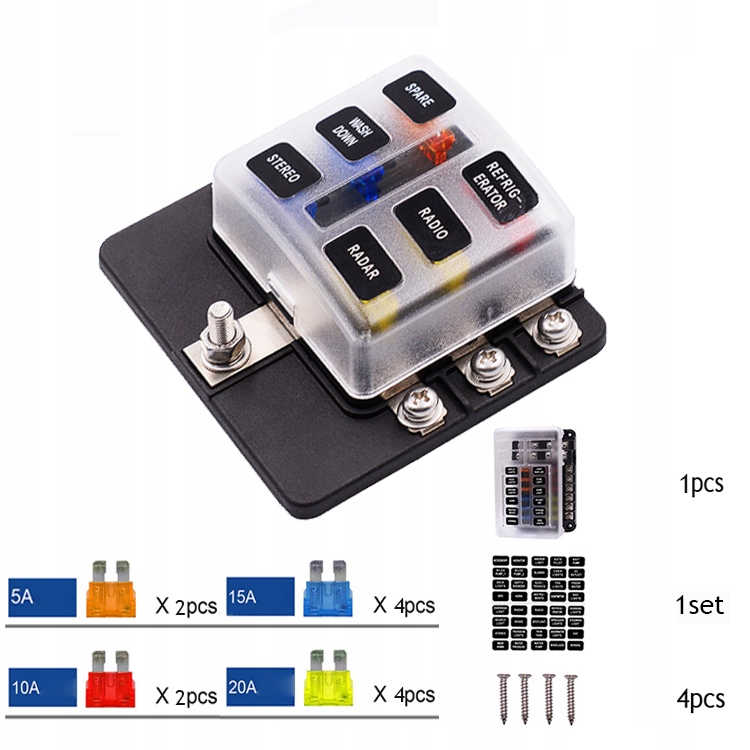 Продукт имеет красный светодиодный индикатор, соответствующий каждому предохранителю, подключенному к электрическим устройствам, когда предохранитель поврежден, красный свет будет ярким, вы можете немедленно выяснить, какой предохранитель поврежден, простой в использовании. Ток выбор электрических устройств для безопасности времени.