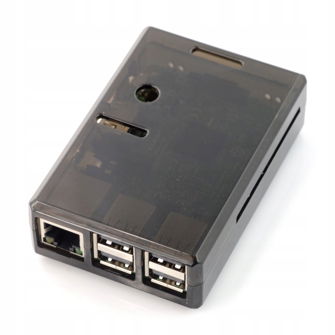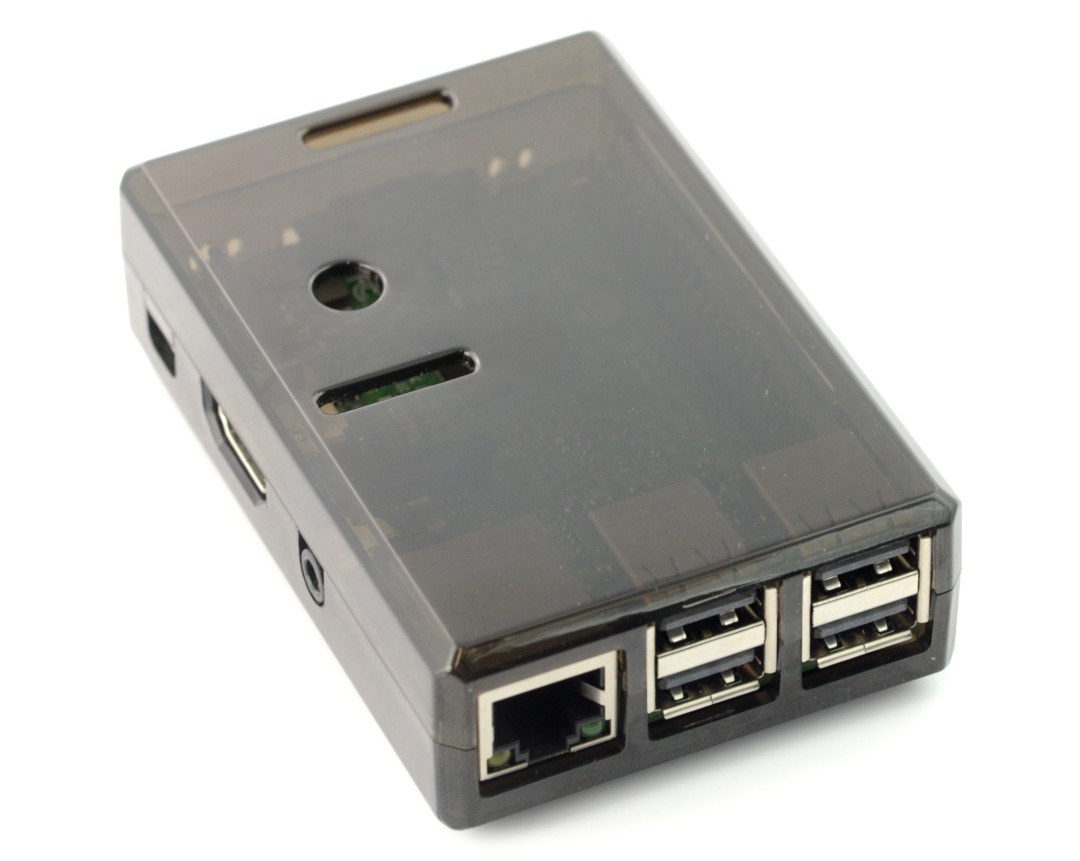 Прозрачный тонированный корпус для миникомпьютера Raspberry Pi версий 3B+, 3B, 2B и 1B+ с внешними размерами: 90 х 60 х 25 мм. Имеет отверстия для разъемов GPIO и камеры. Крепится с помощью защелок.