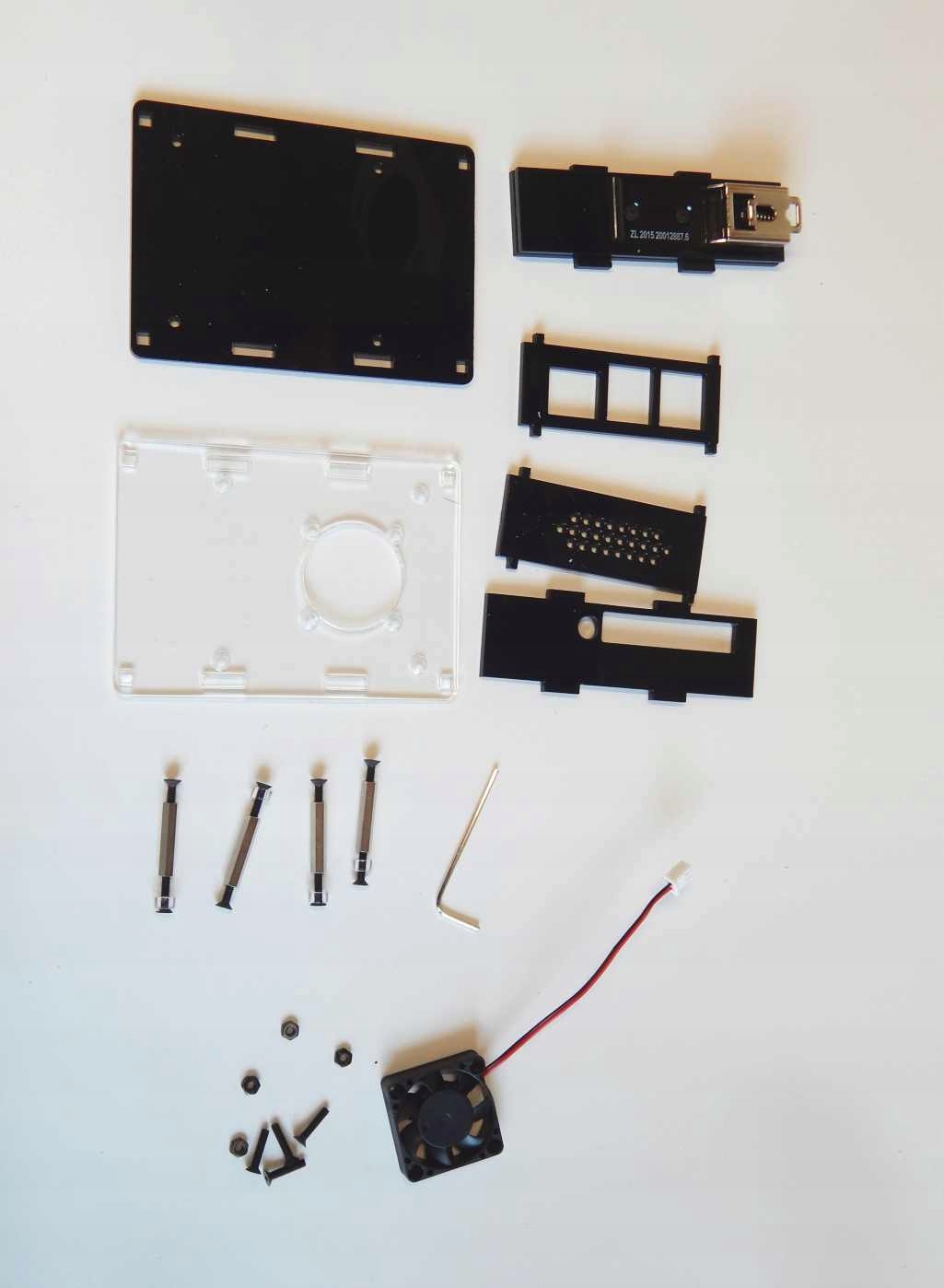 Модель Raspberry Model 4B корпус микрокомпеттера, адаптированный для монтажа на рельсе DIN на боковой стенке, благодаря тому, что он занимает мало места, изготовленного из черного и прозрачного акрилового 3 мм толщиной плюс дополнительного вентилятора. После сборки корпуса нет доступа к разъему с помощью SD -карты
